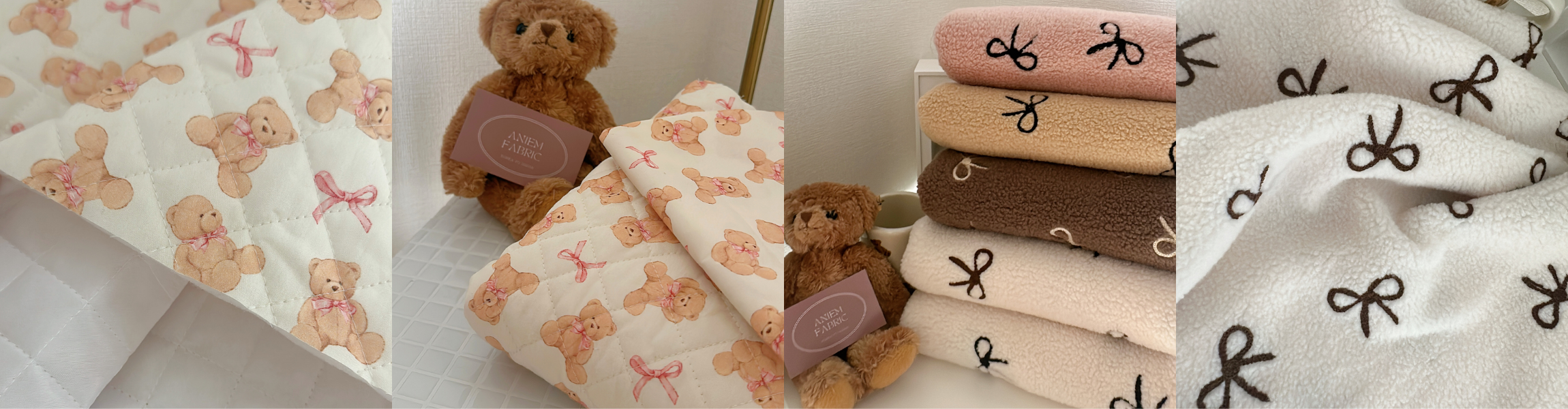 【即納】ribbon teddy quilting / くま / テディベア / リボン / キルティング / コットン[QU028]