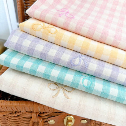 【即納/予約】french gingham ribbon / 刺繍 / コットン / ギンガム / リボン[EM011]