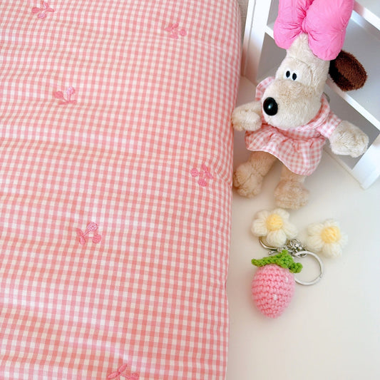 【即納】pink gingham cherry quilting / チェリー / ギンガム / チェック / コットン / キルティング[QU036]