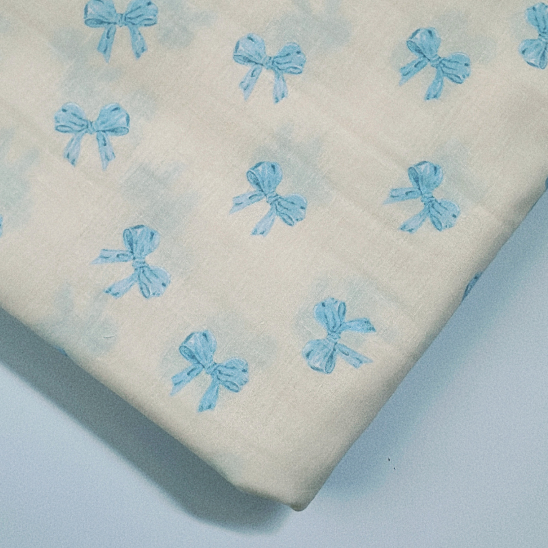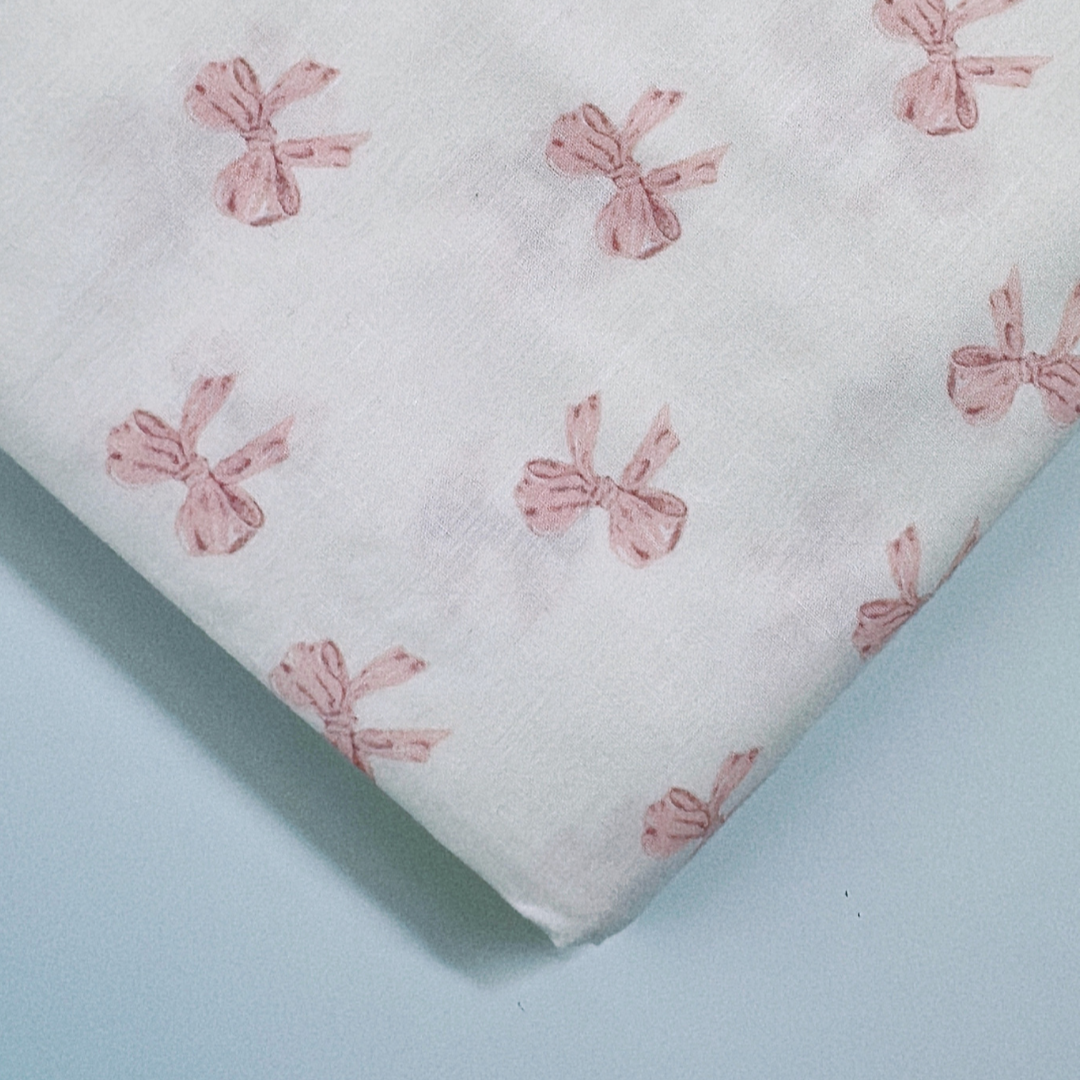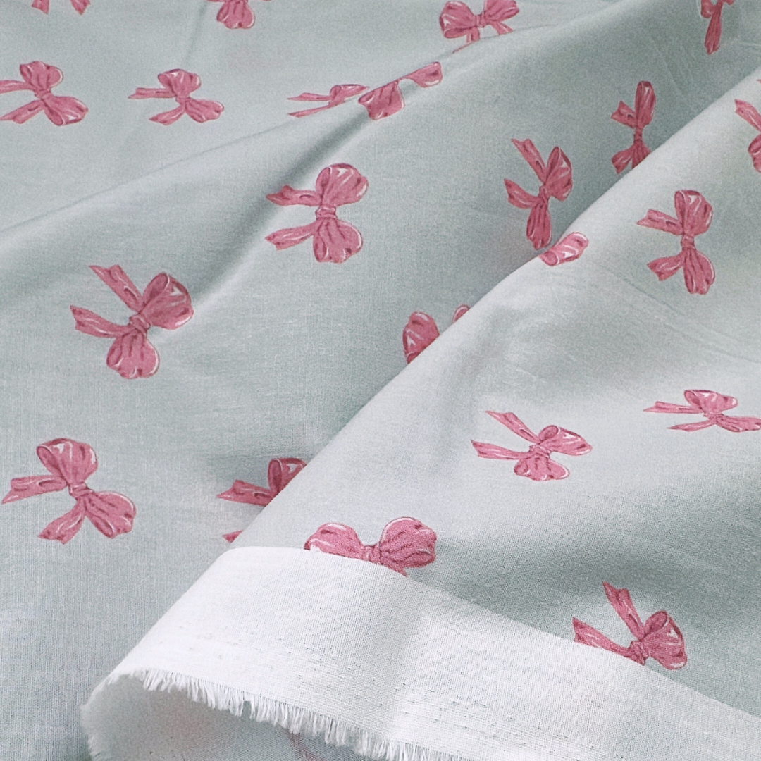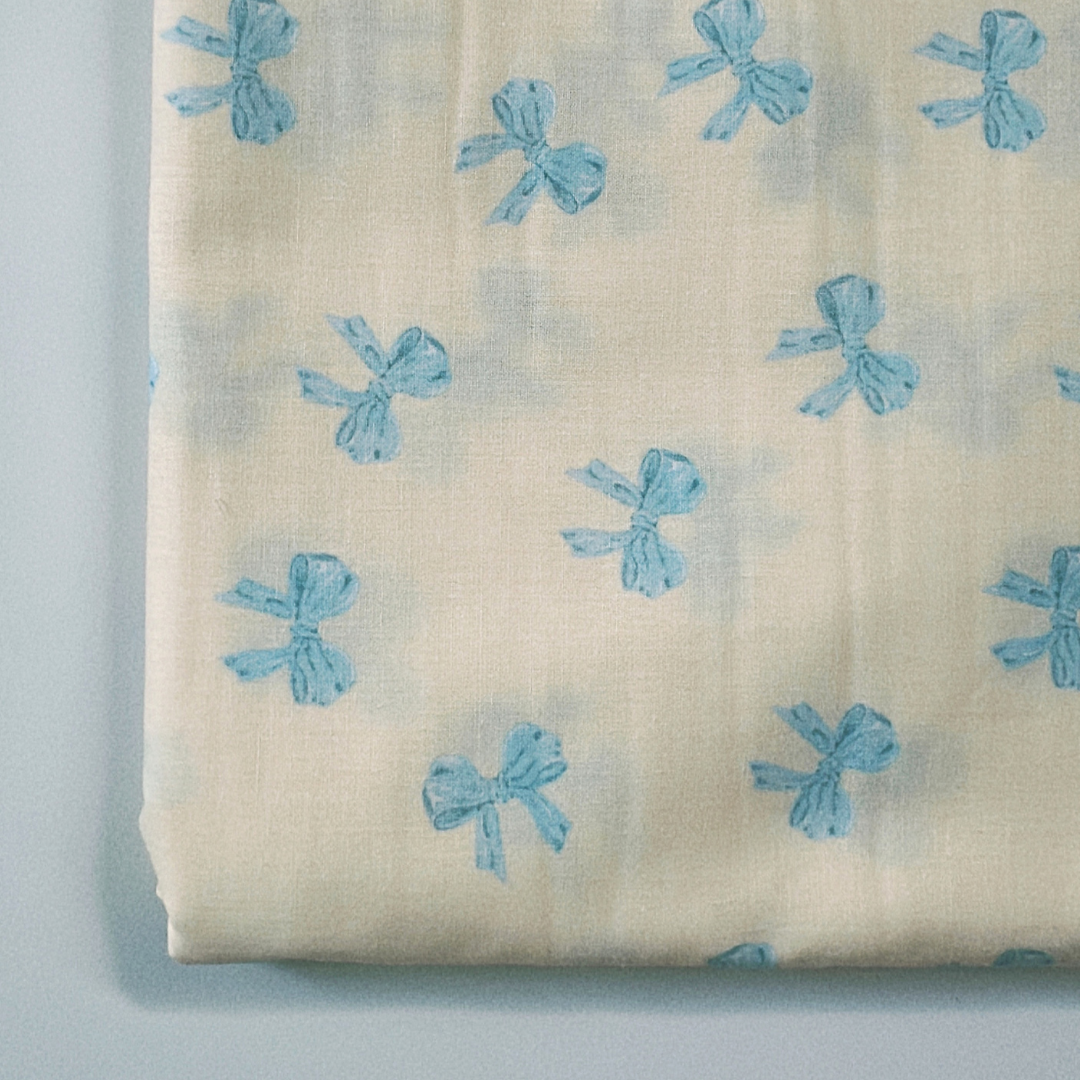 水彩風のリボンが並ぶ、ふんわり軽やかなコットン生地です🧵🎀