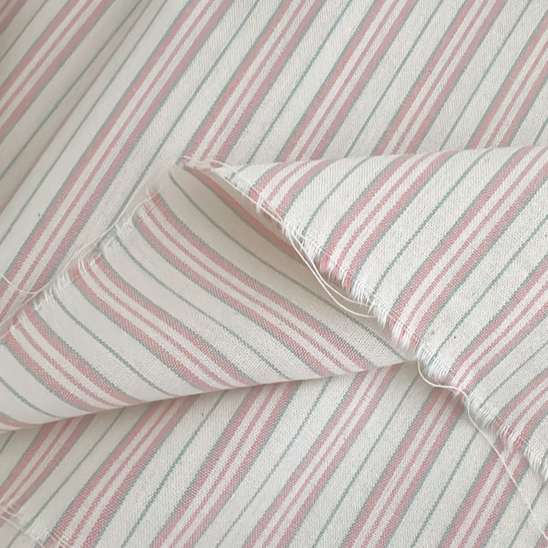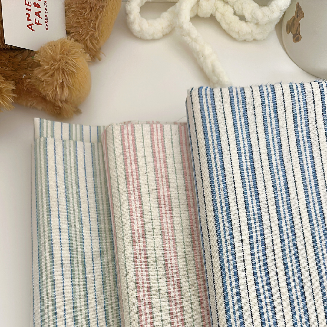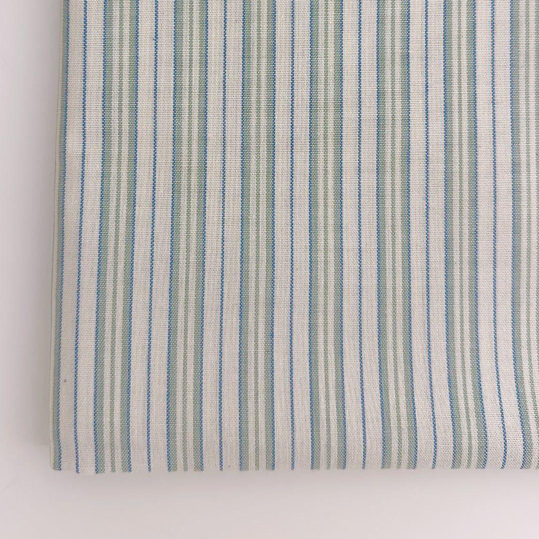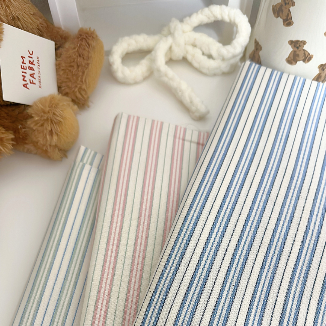 やさしい色合いの細ストライプが並んだ、爽やかな印象の生地🕊✨