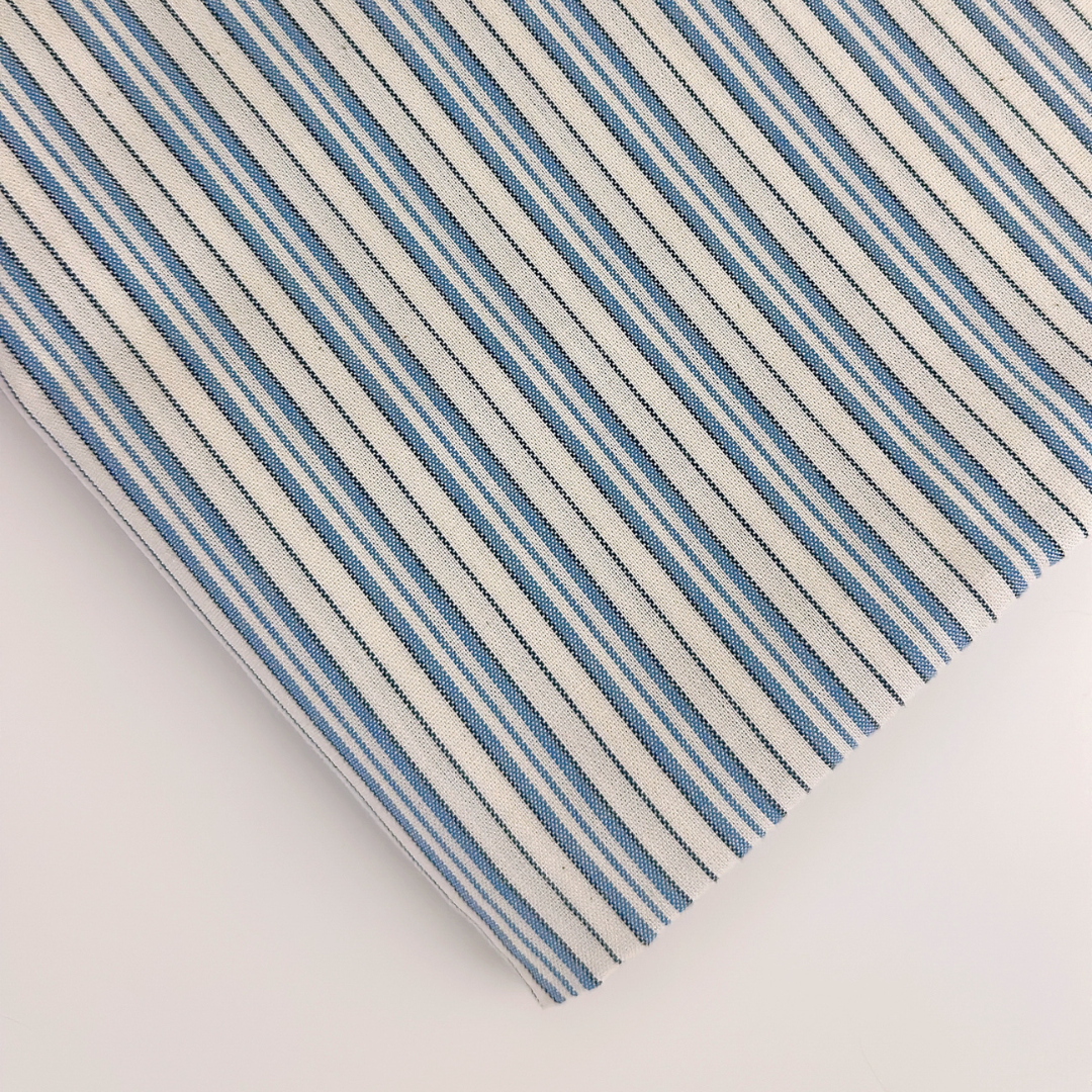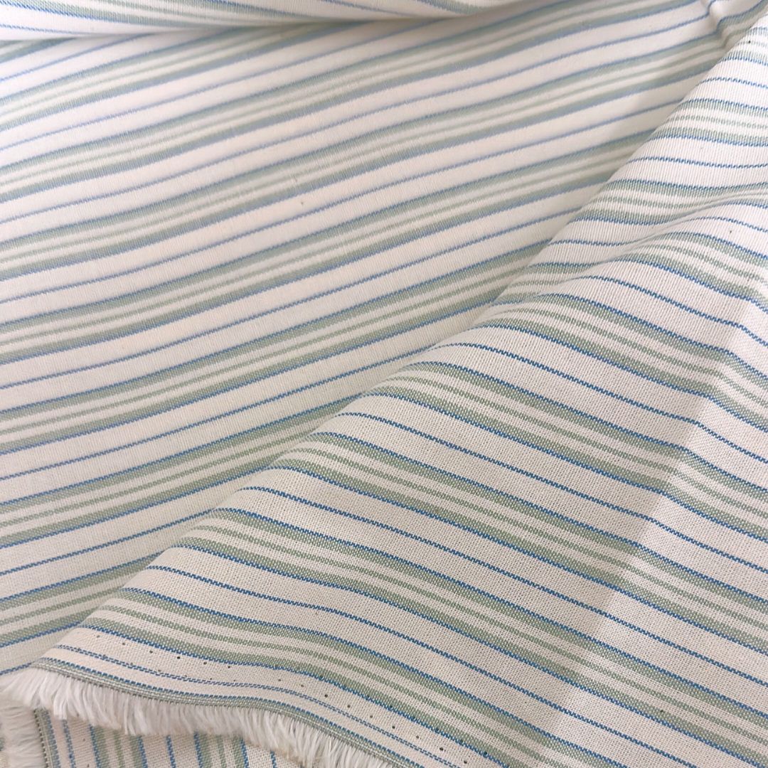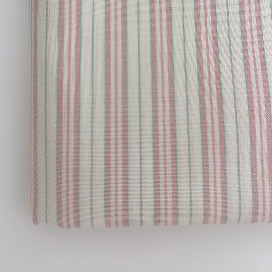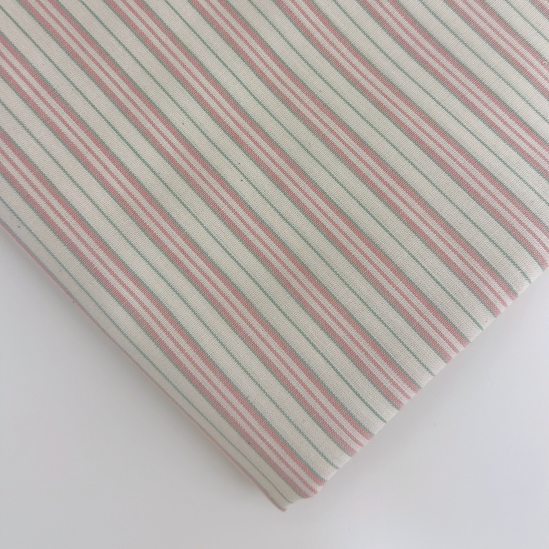 やさしい色合いの細ストライプが並んだ、爽やかな印象の生地🕊✨