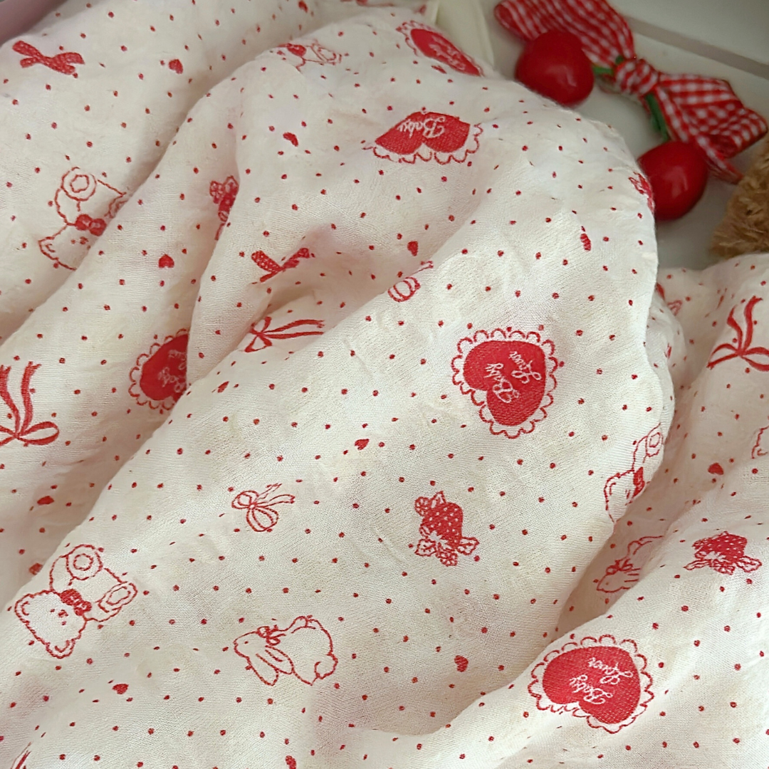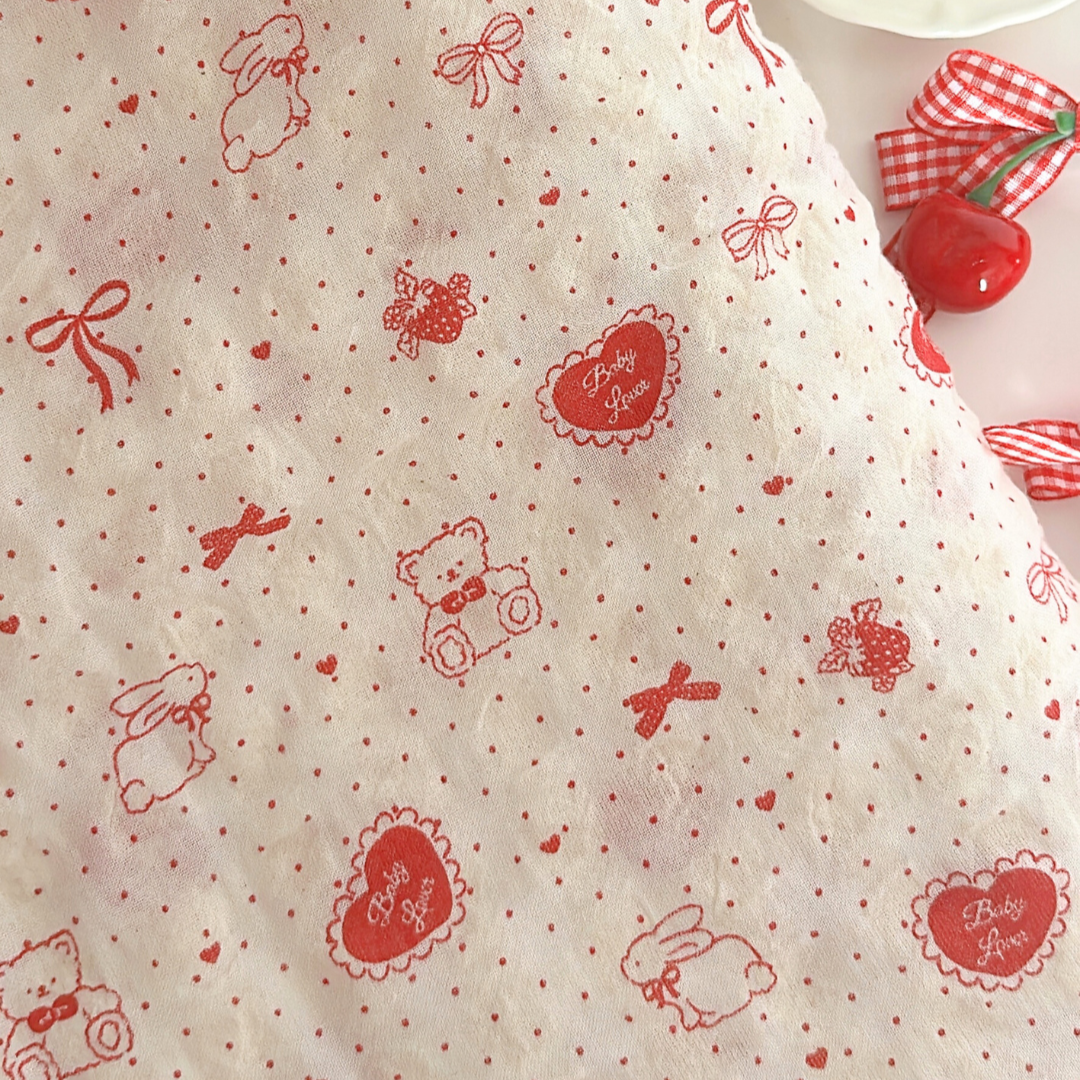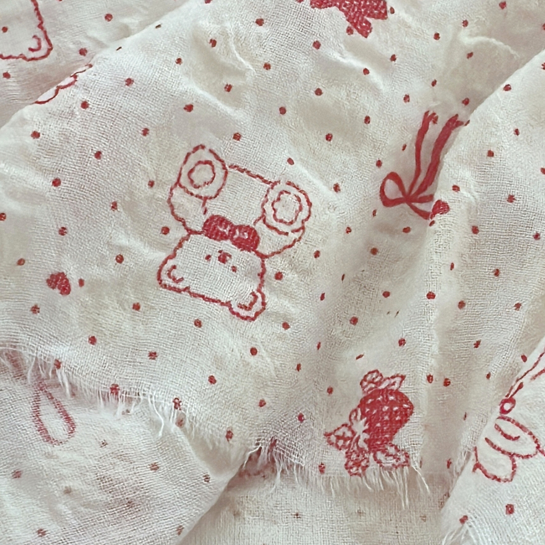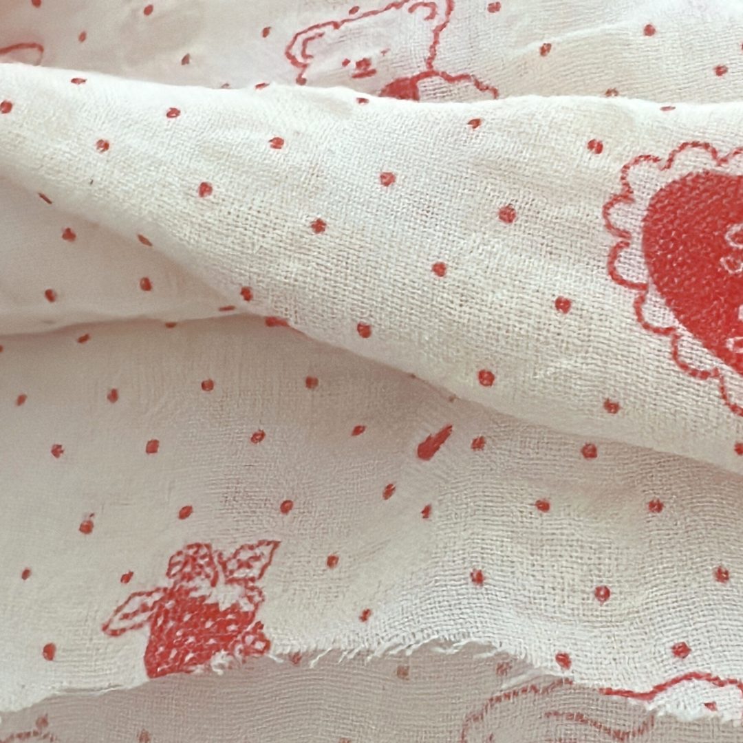 ぎゅっと詰め込んだ、赤が印象的なレトロかわいいプリント生地💖