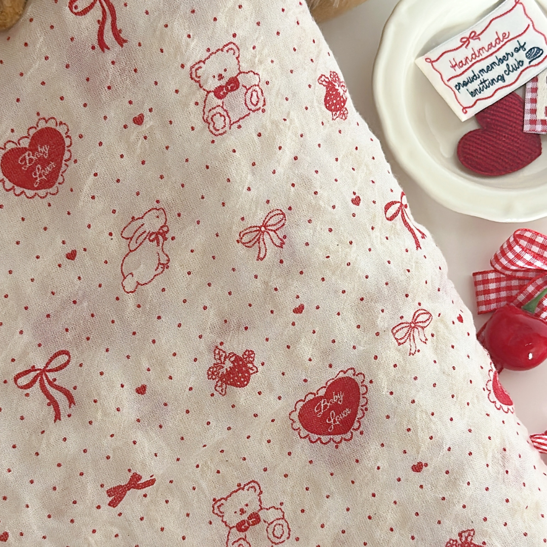 【即納】heart ribbon bear / リボン / ドット / くま / コットン[CO034]