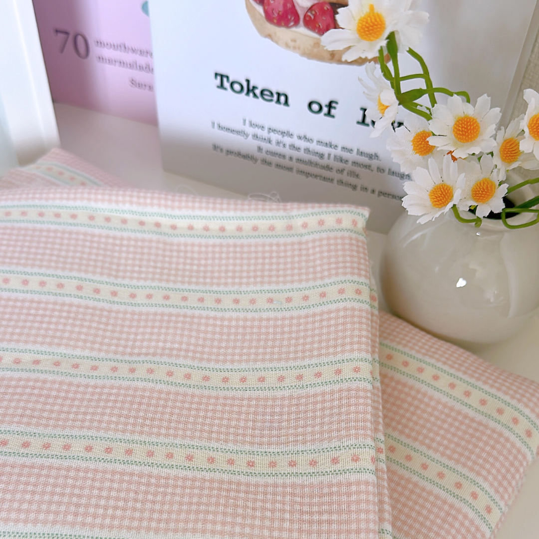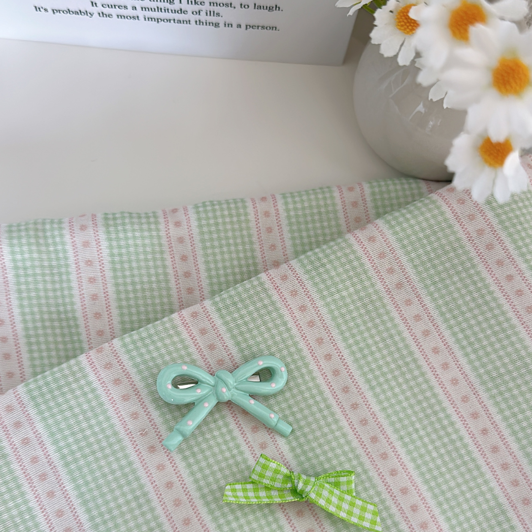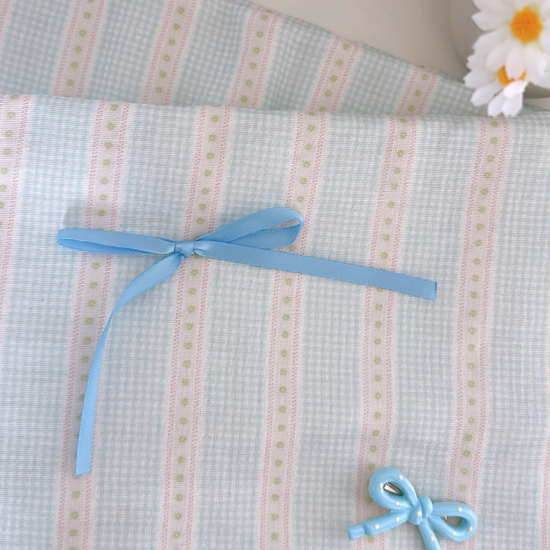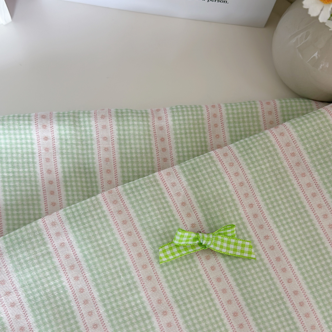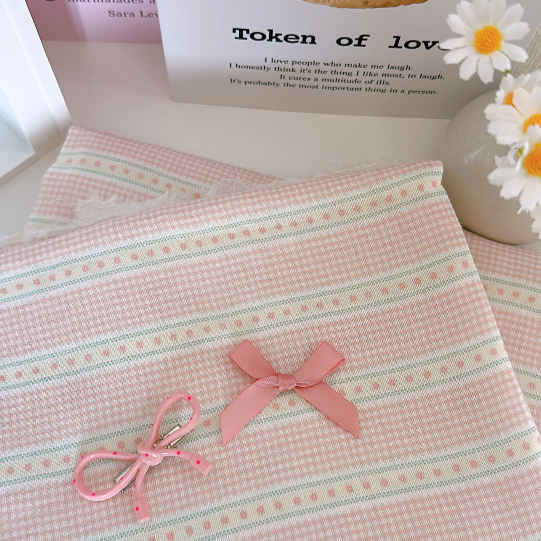 小さなチェックと可愛いリボンラインを組み合わせたガーリー生地👑✨