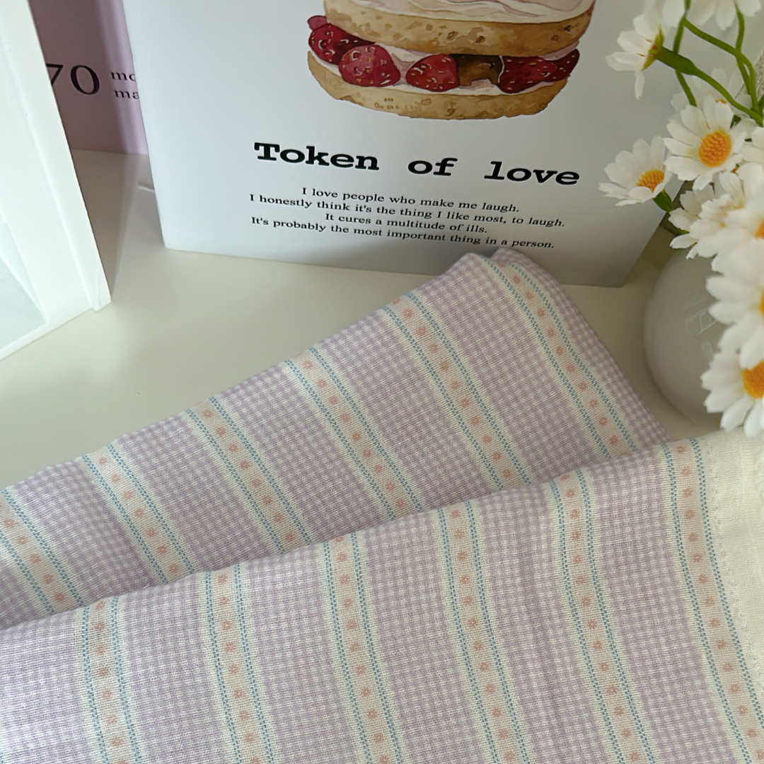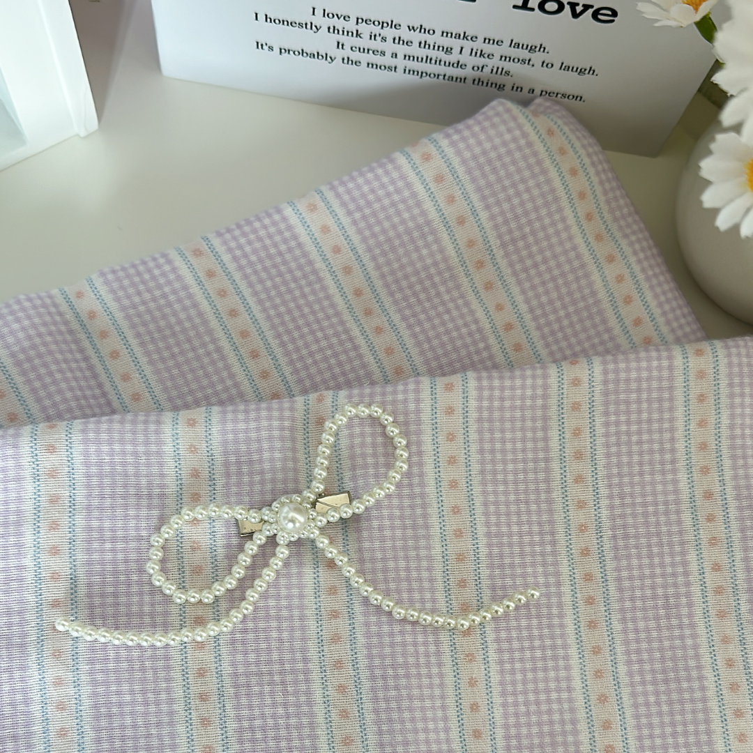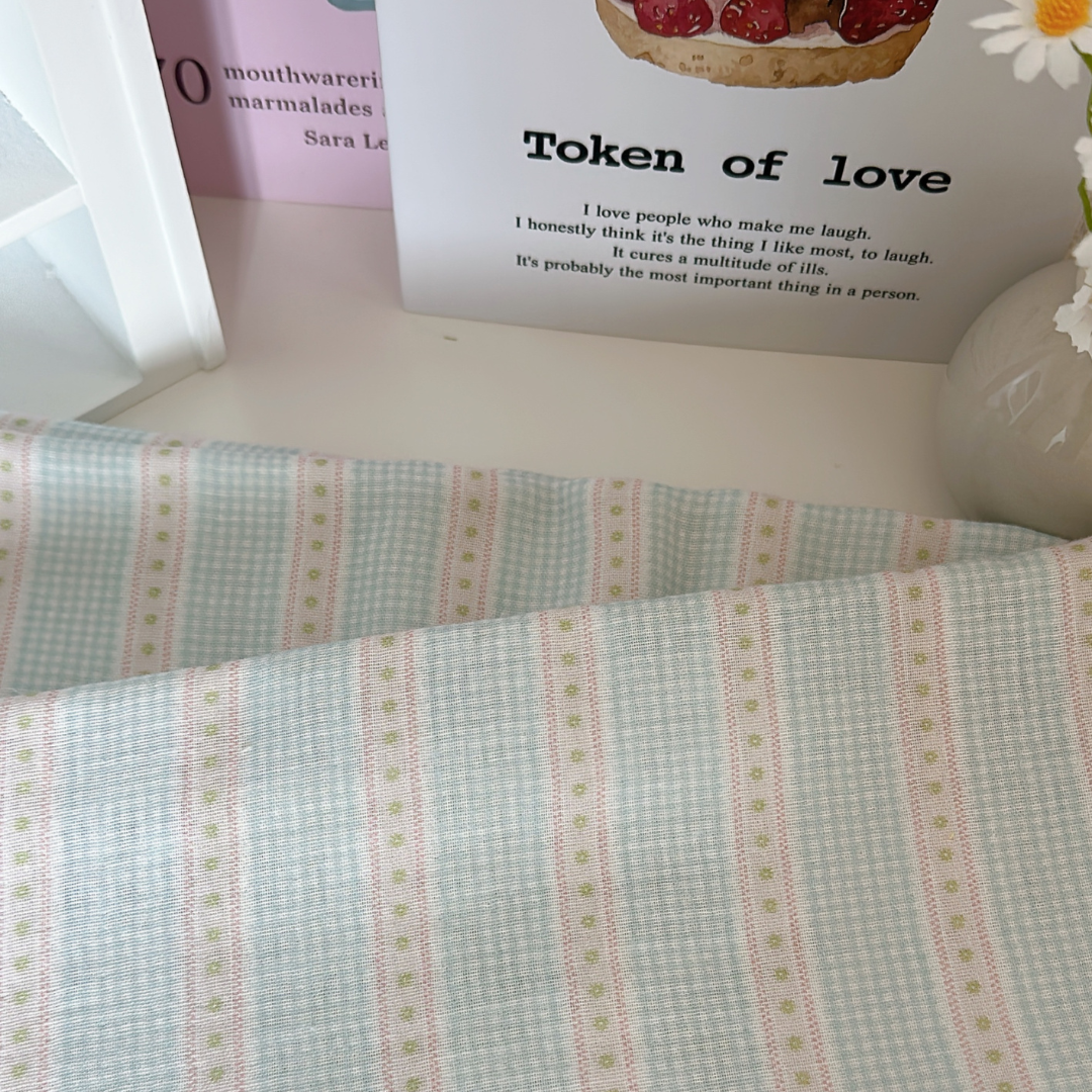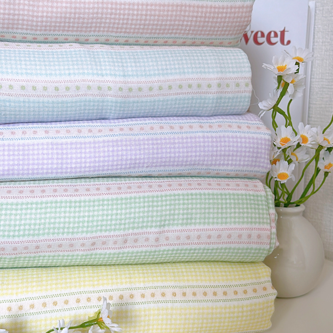 小さなチェックと可愛いリボンラインを組み合わせたガーリー生地👑✨