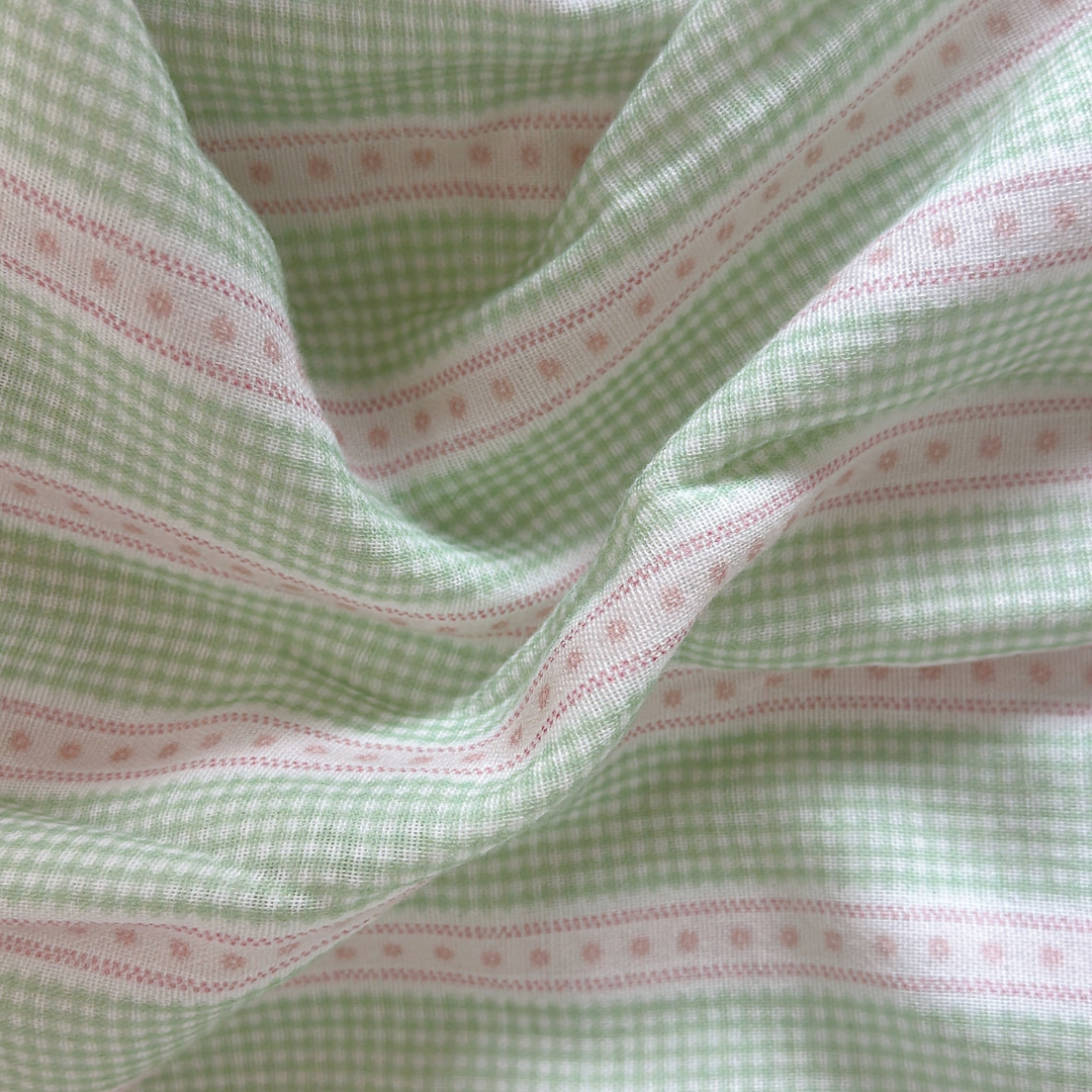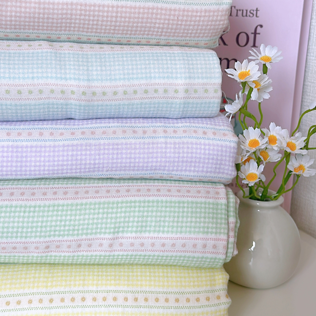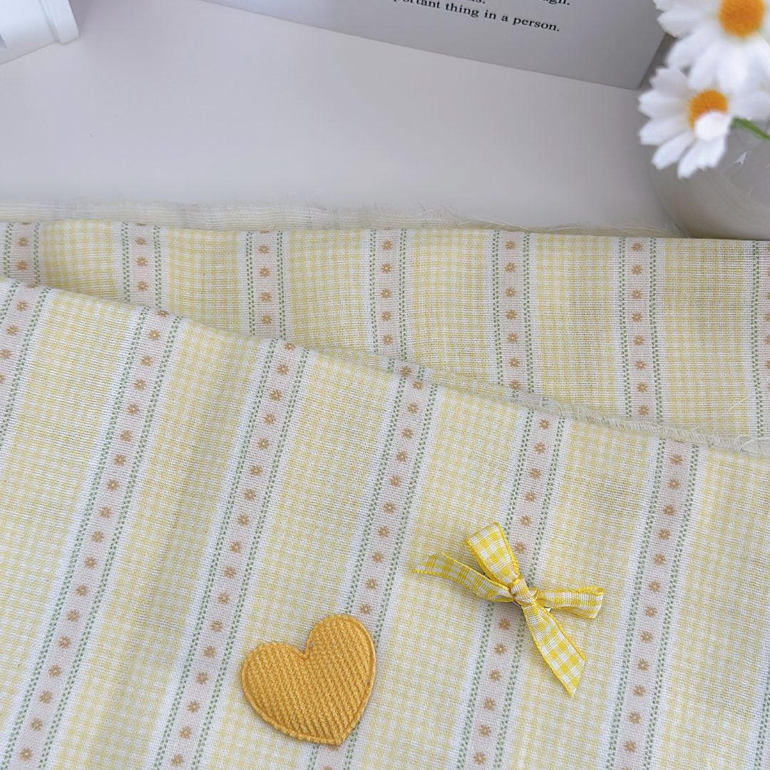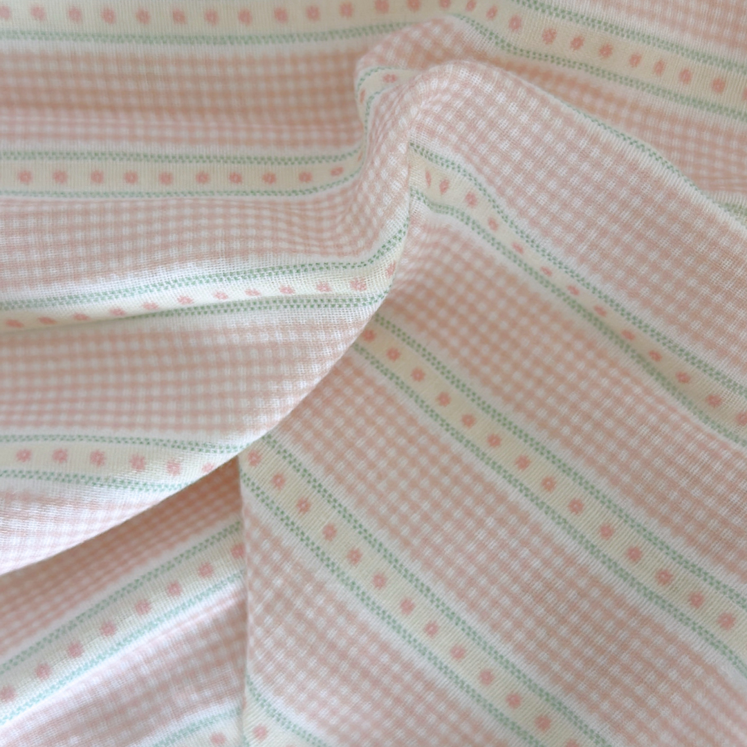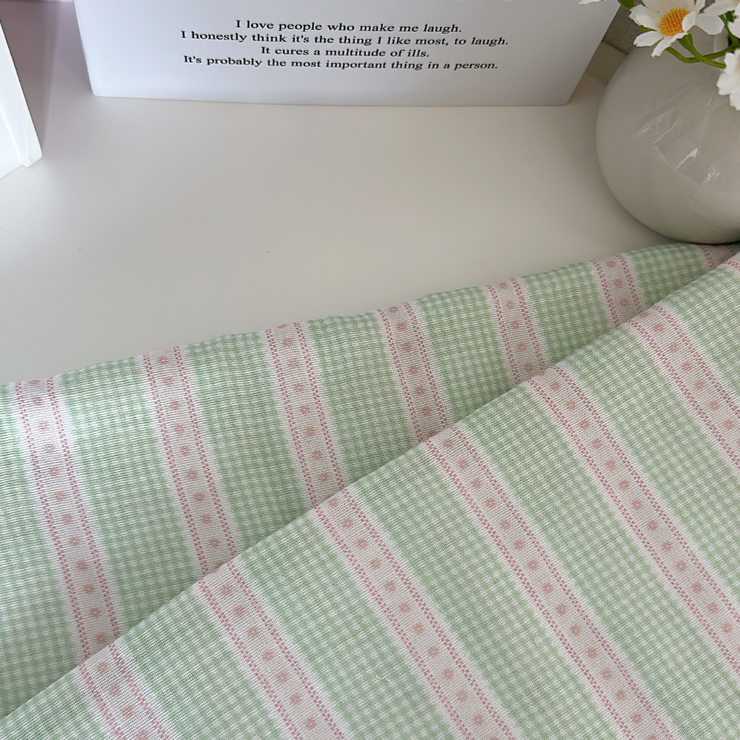 小さなチェックと可愛いリボンラインを組み合わせたガーリー生地👑✨