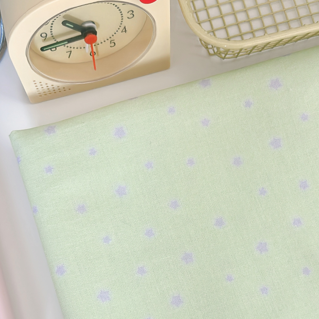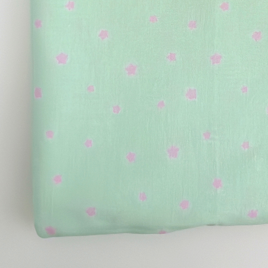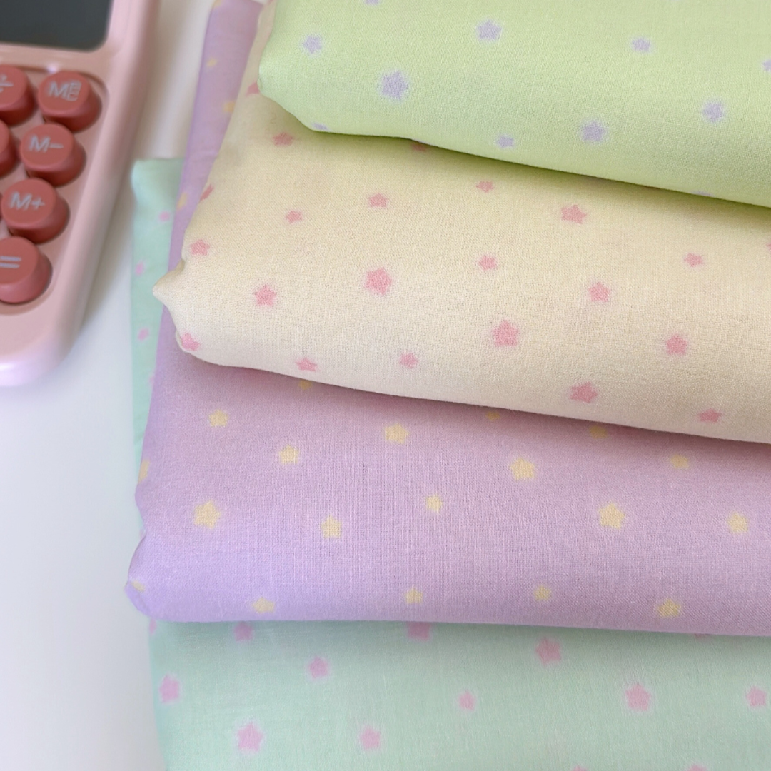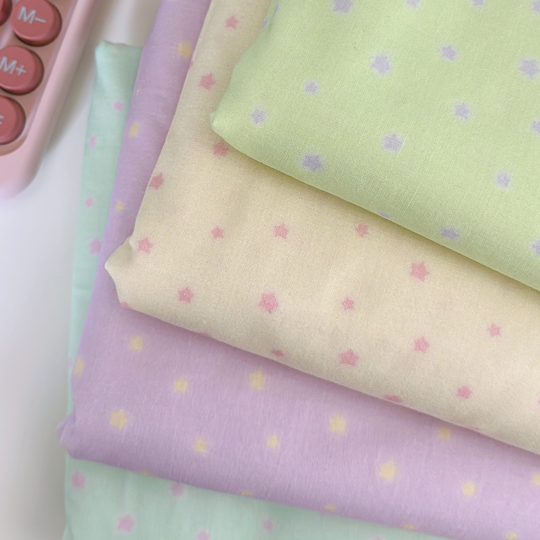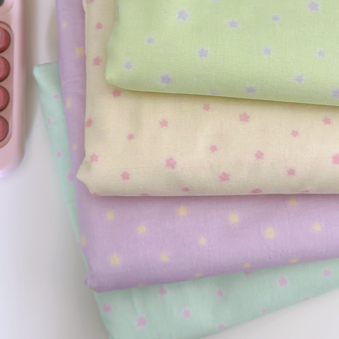 淡いパステルカラーに小さな星が散りばめられた愛らしい生地🌟🌙💛