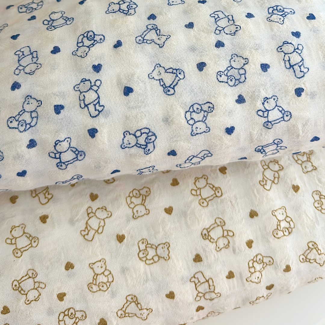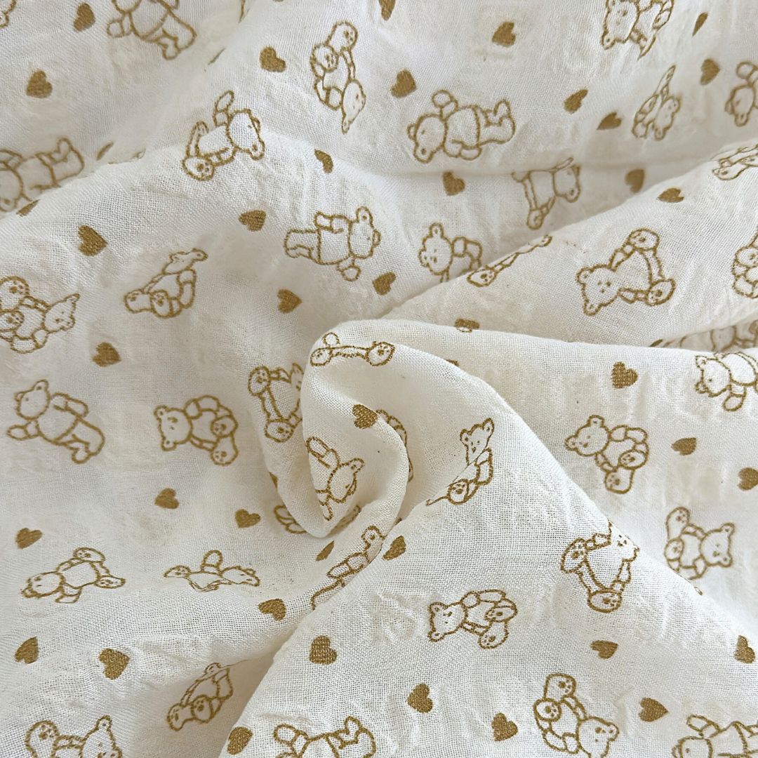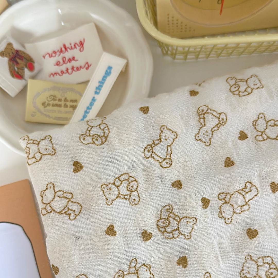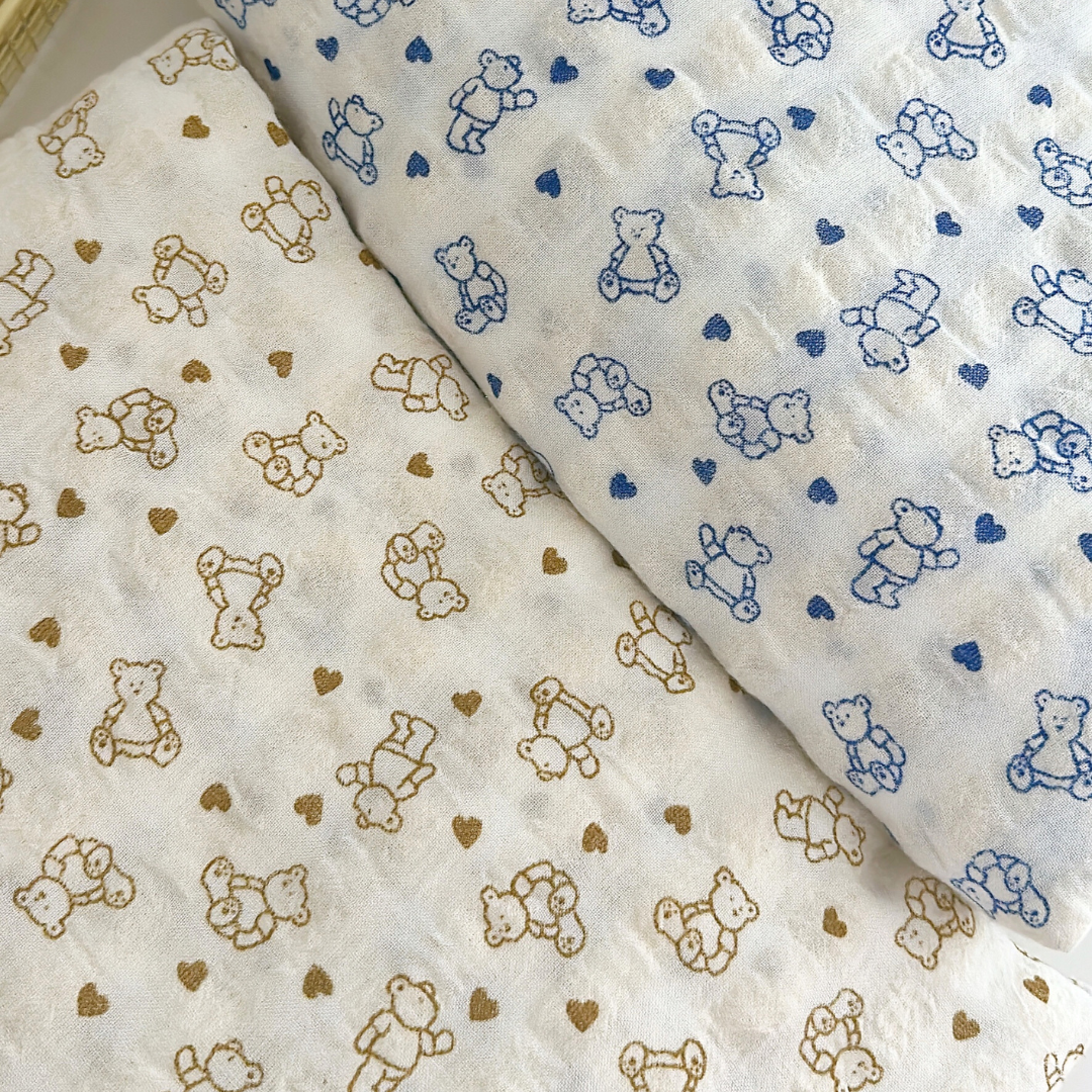 やわらかくふんわりとしたガーゼ風の質感が心地よい、可愛らしいくまさん柄の生地です🧸💓