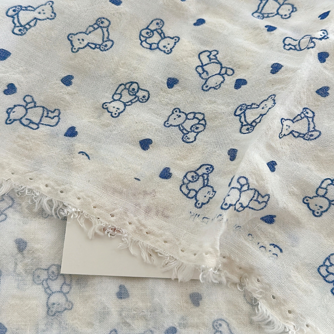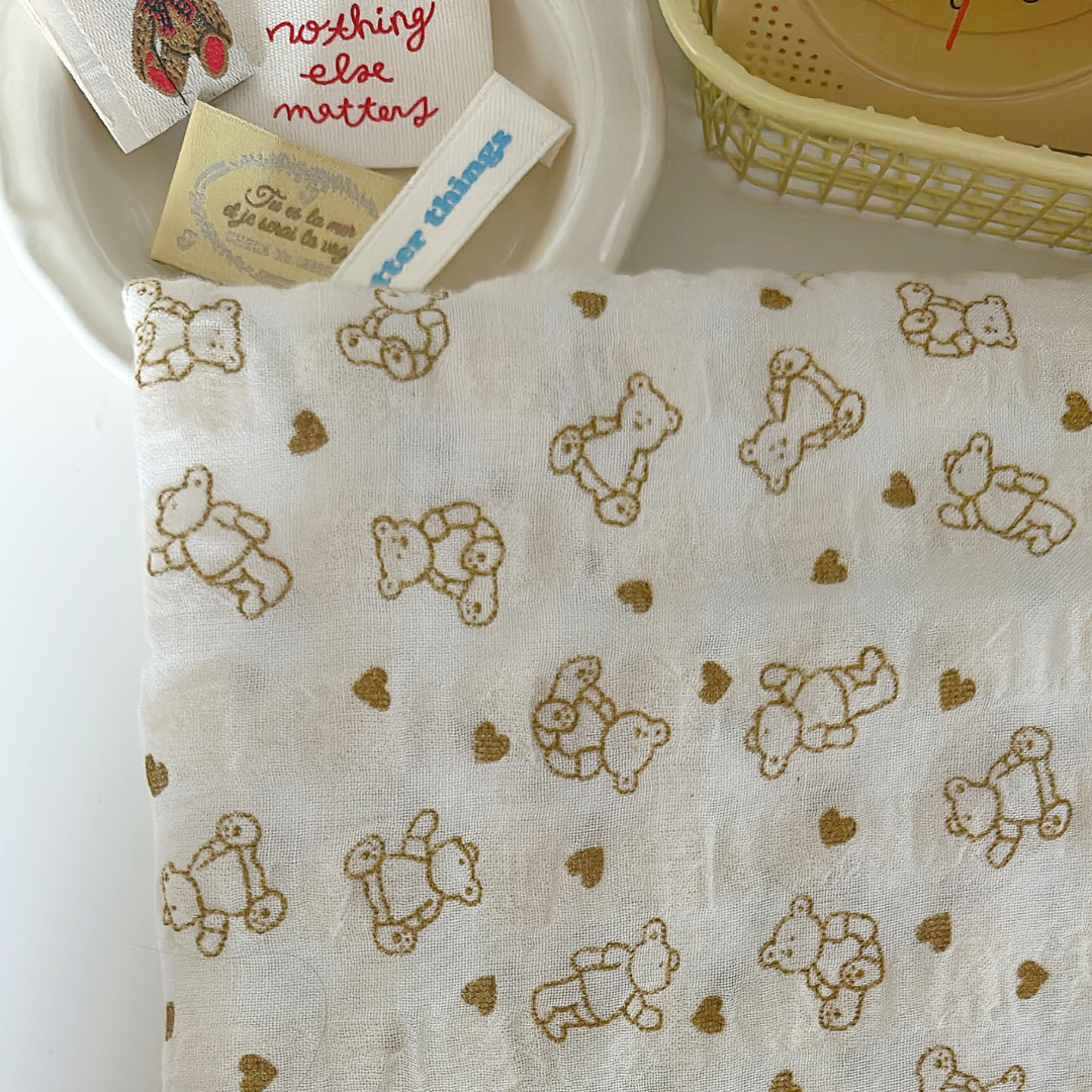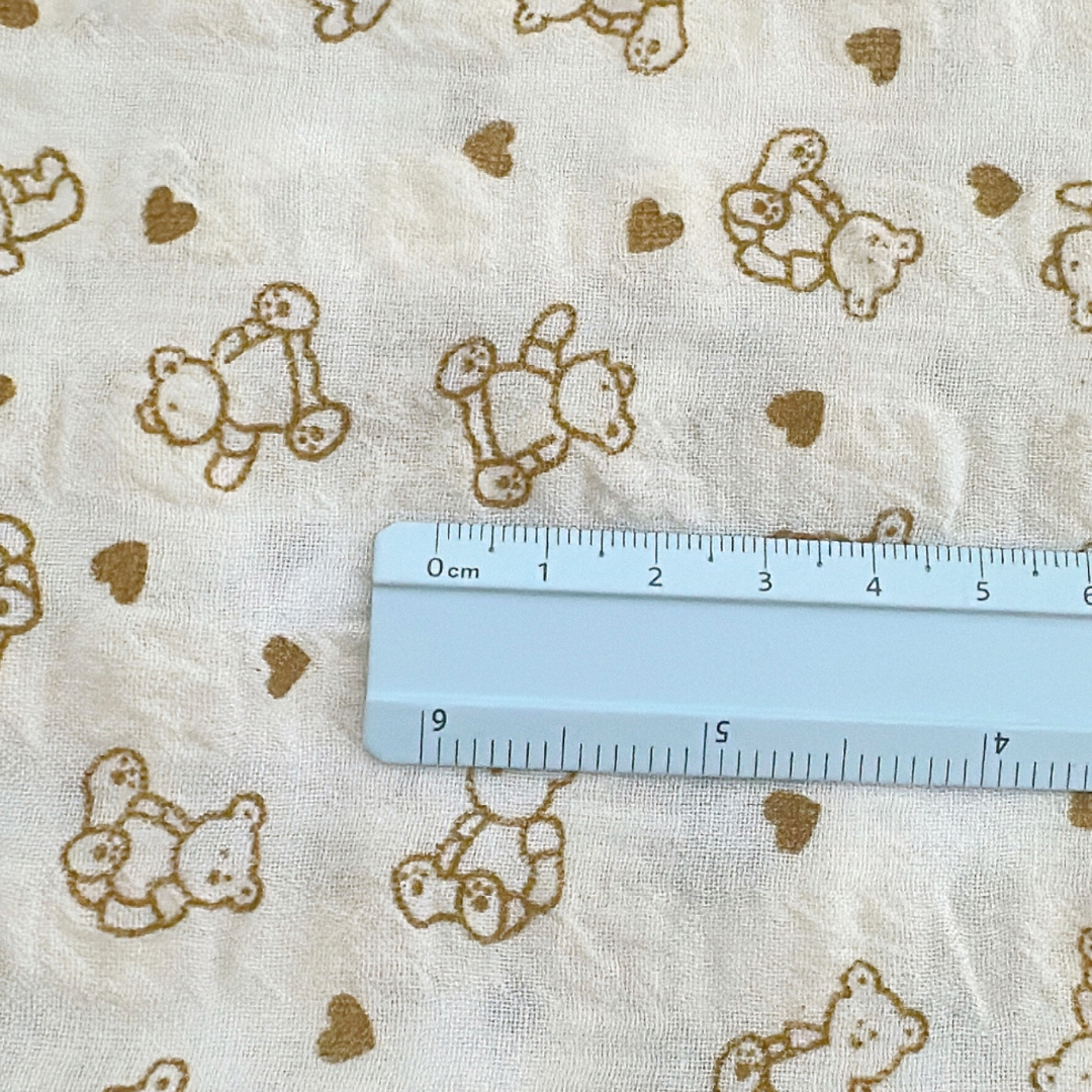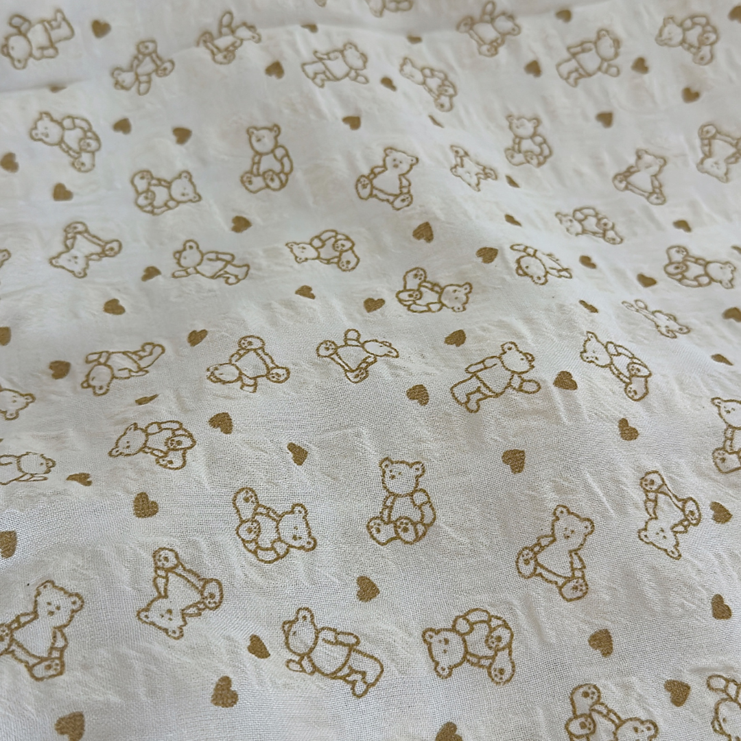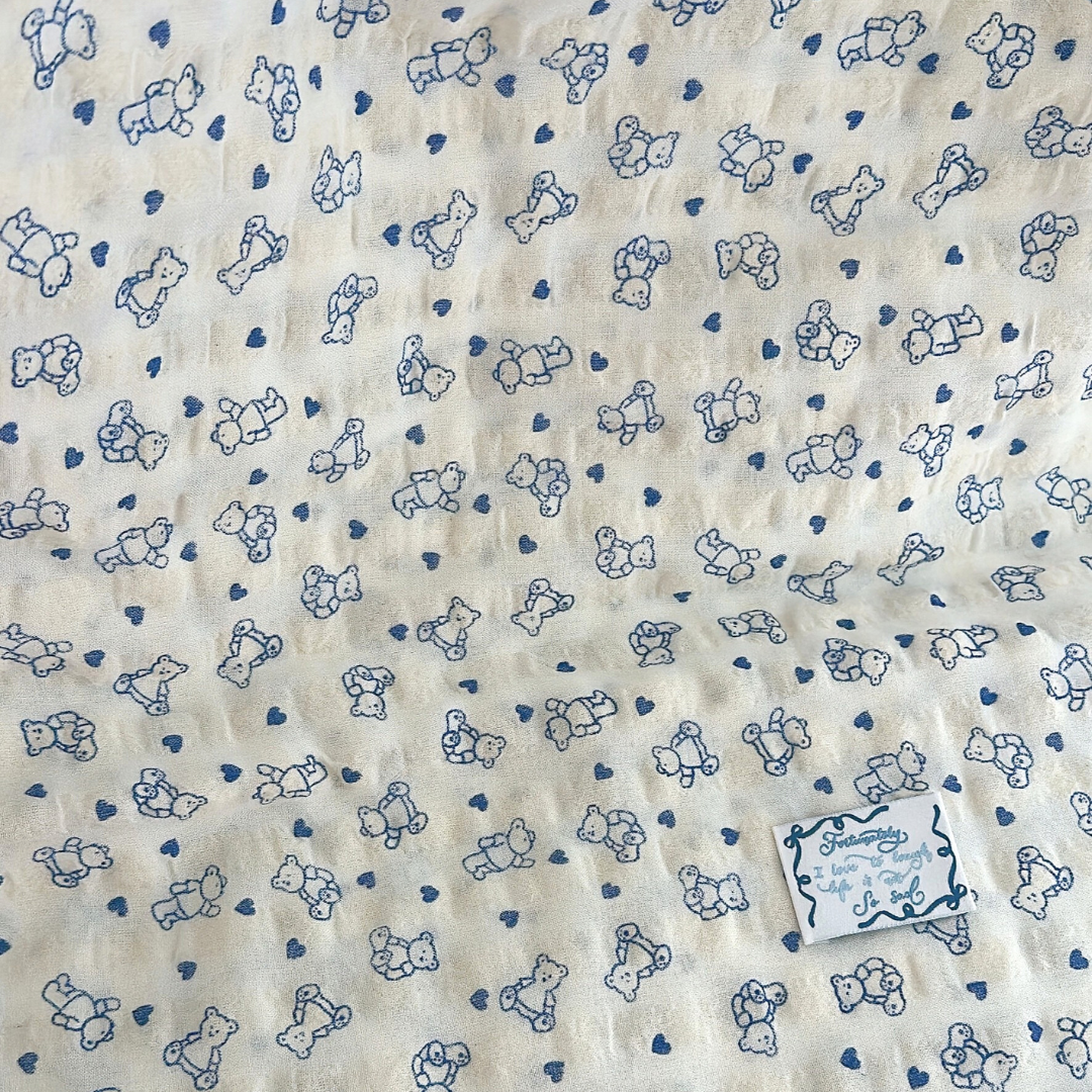 やわらかくふんわりとしたガーゼ風の質感が心地よい、可愛らしいくまさん柄の生地です🧸💓