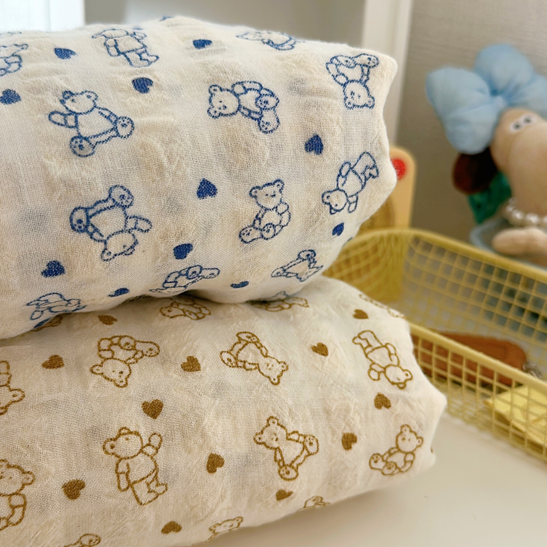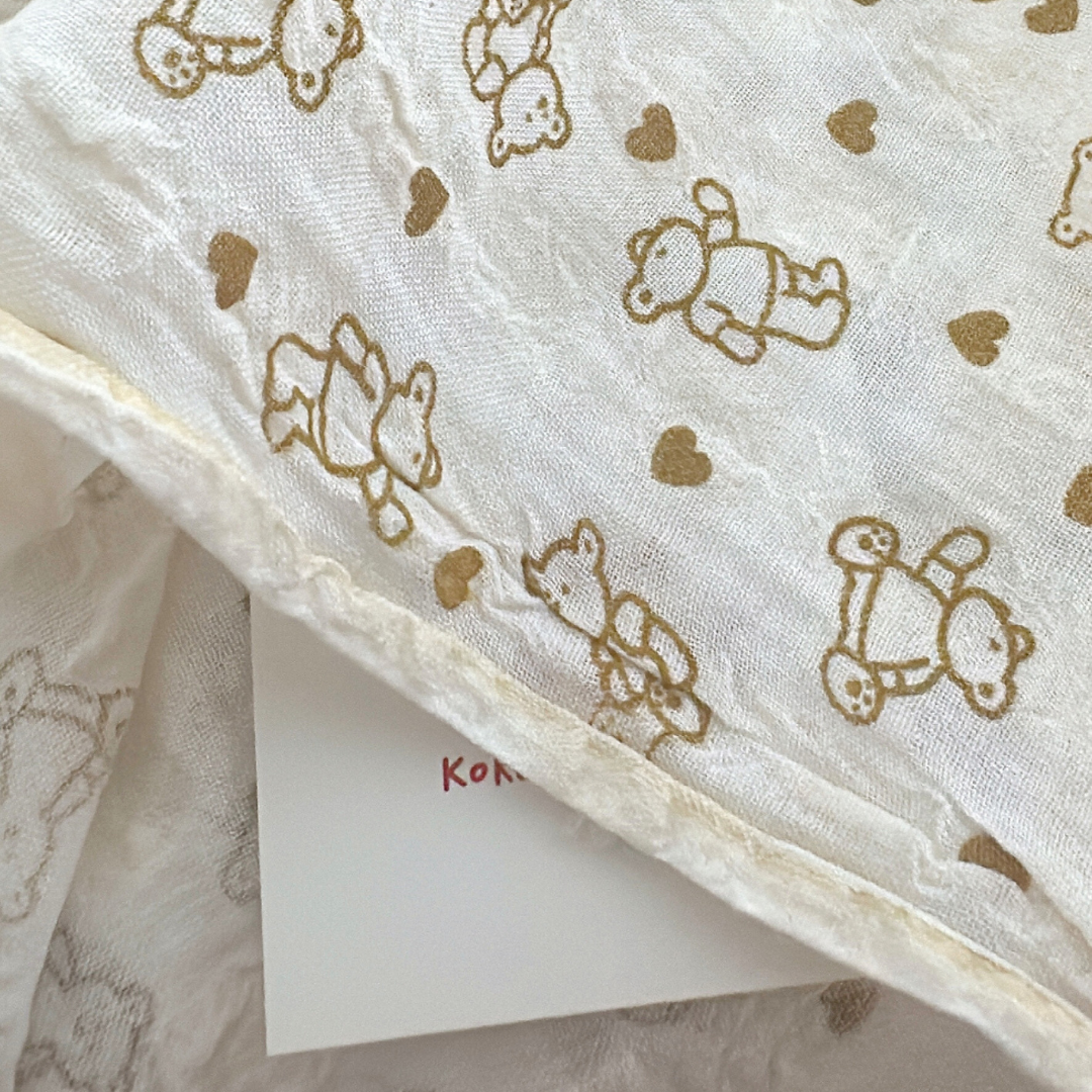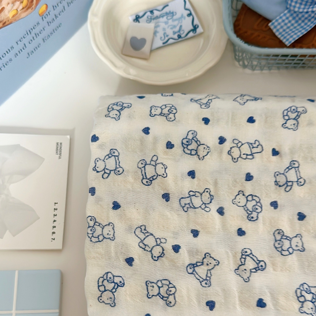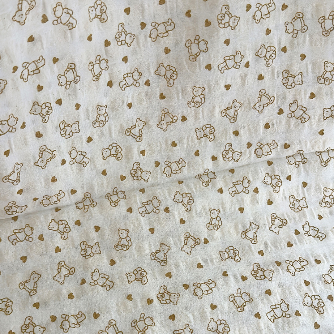 やわらかくふんわりとしたガーゼ風の質感が心地よい、可愛らしいくまさん柄の生地です🧸💓