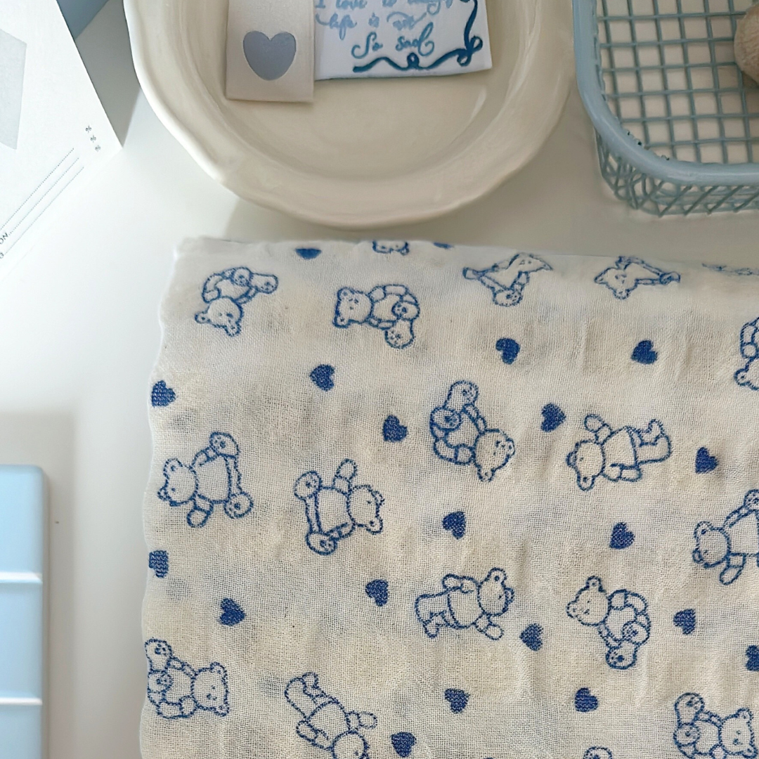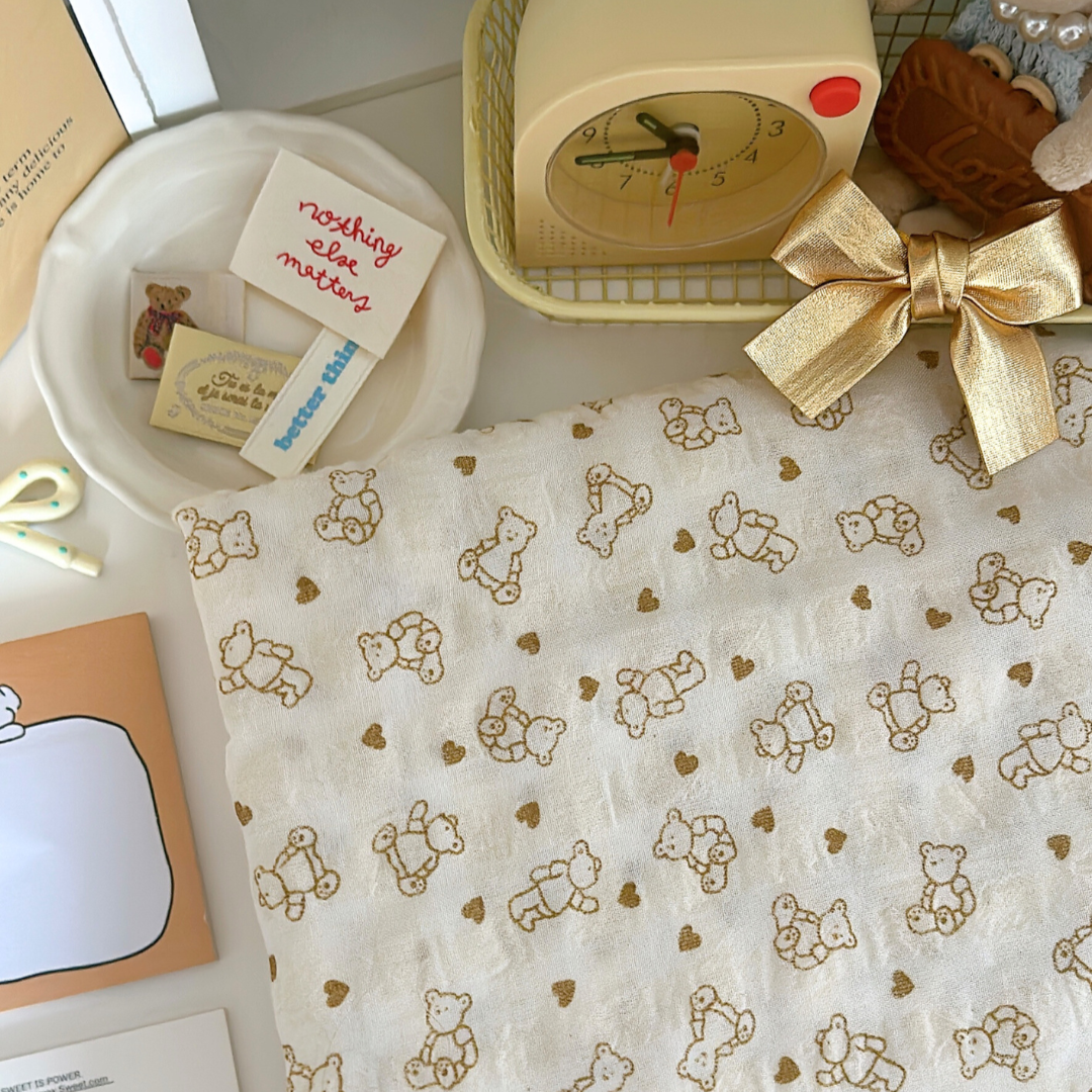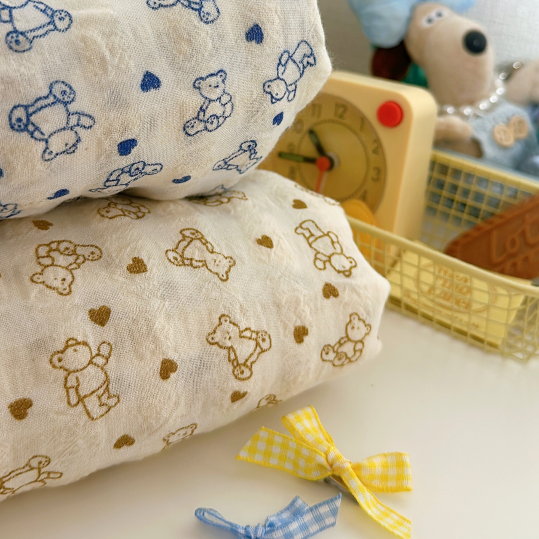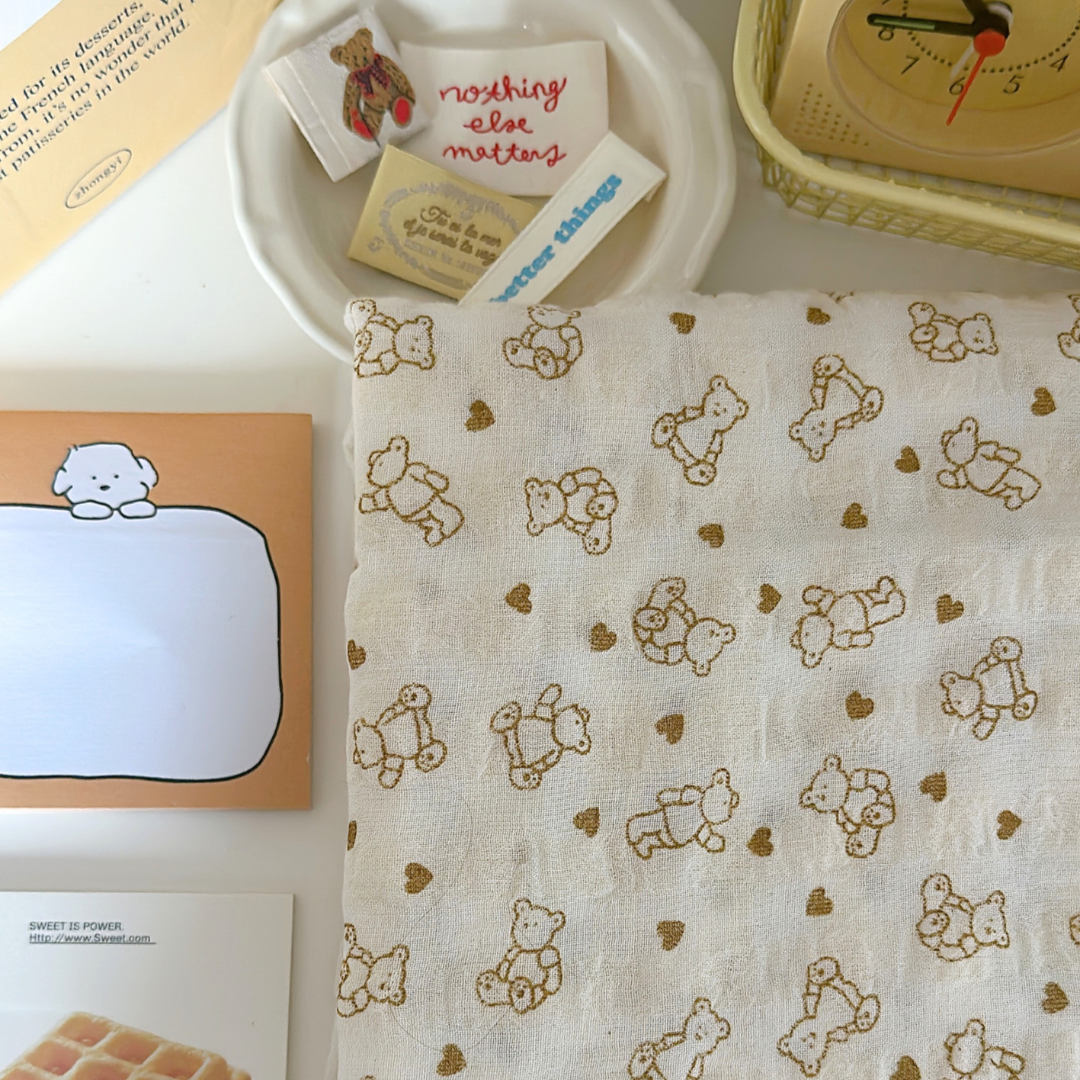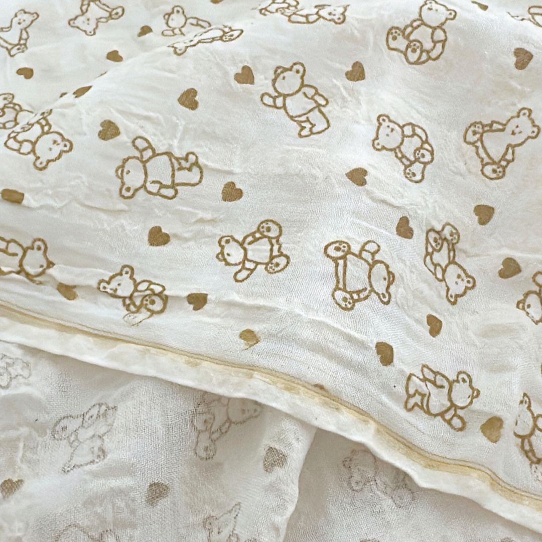 やわらかくふんわりとしたガーゼ風の質感が心地よい、可愛らしいくまさん柄の生地です🧸💓