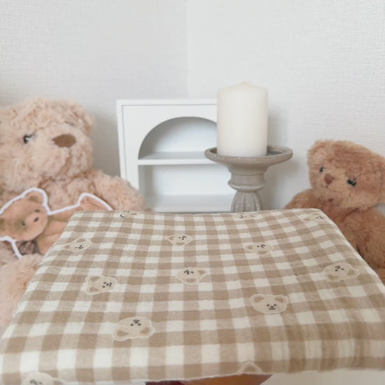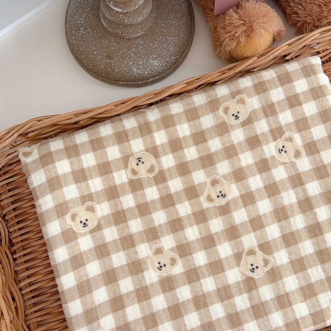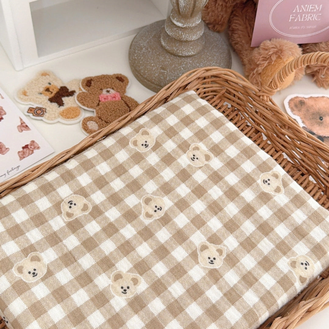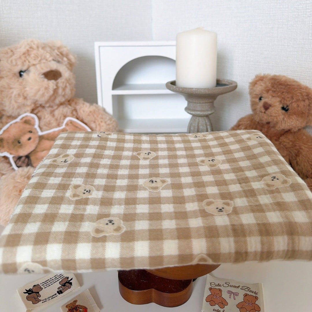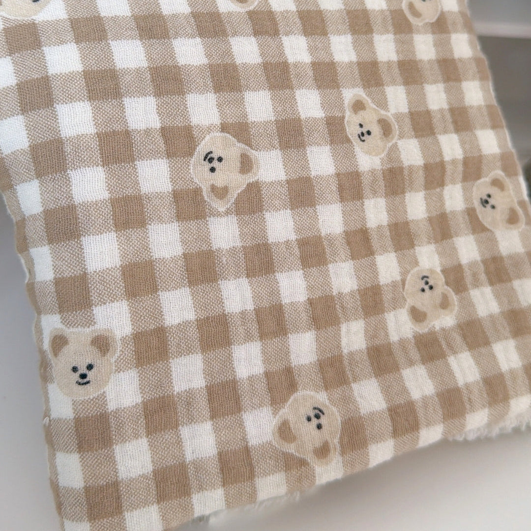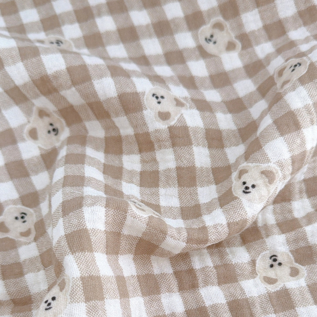 やわらかなミルクティー色のチェック柄に、ぽんっと並んだくまさんが可愛いガーゼ生地🧸
