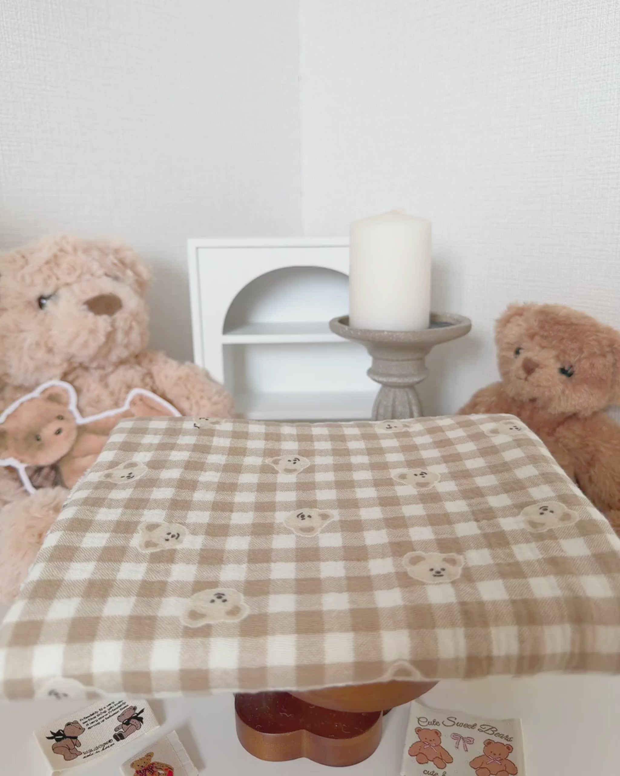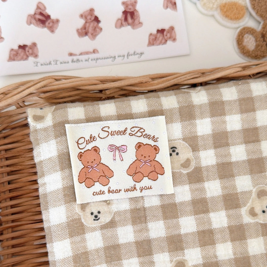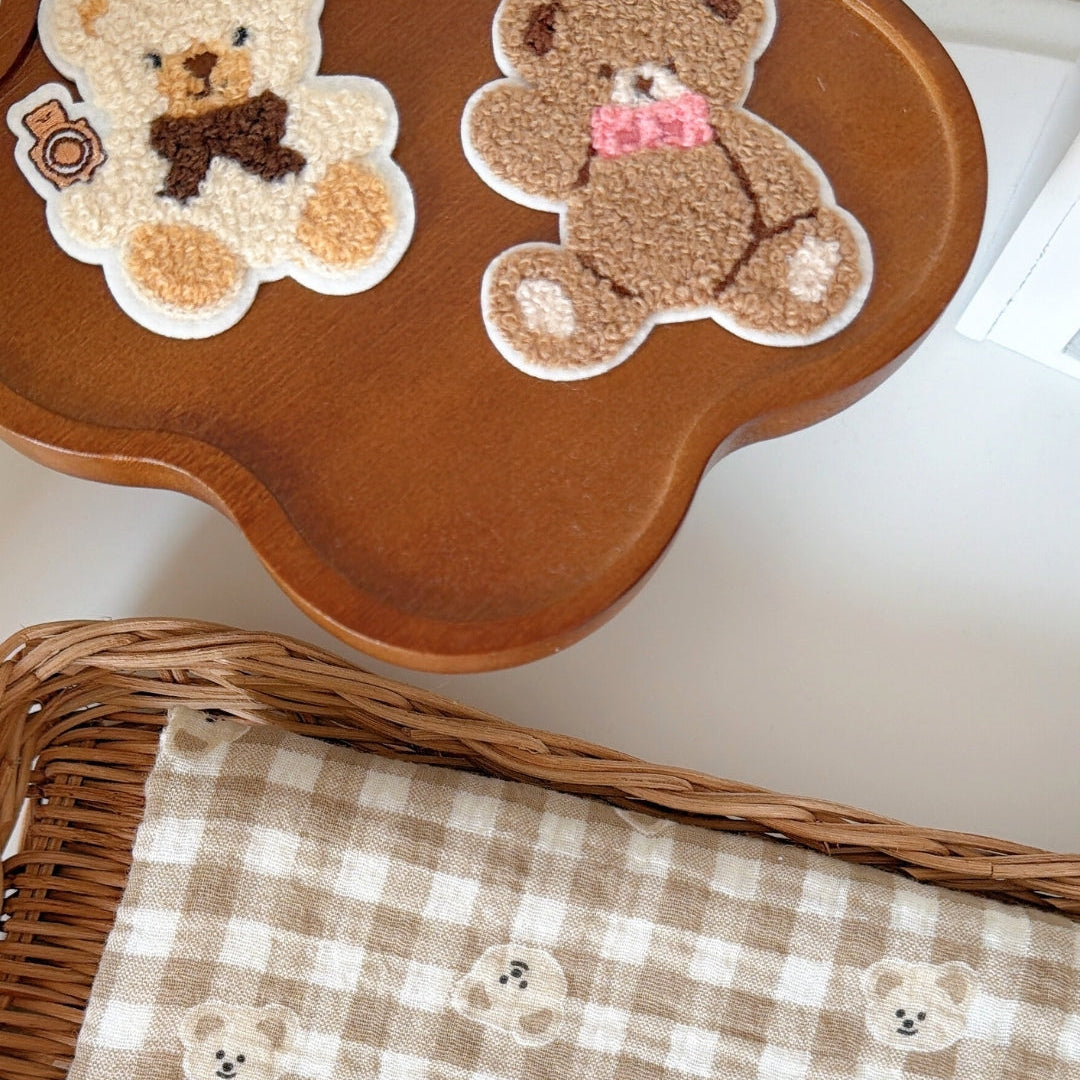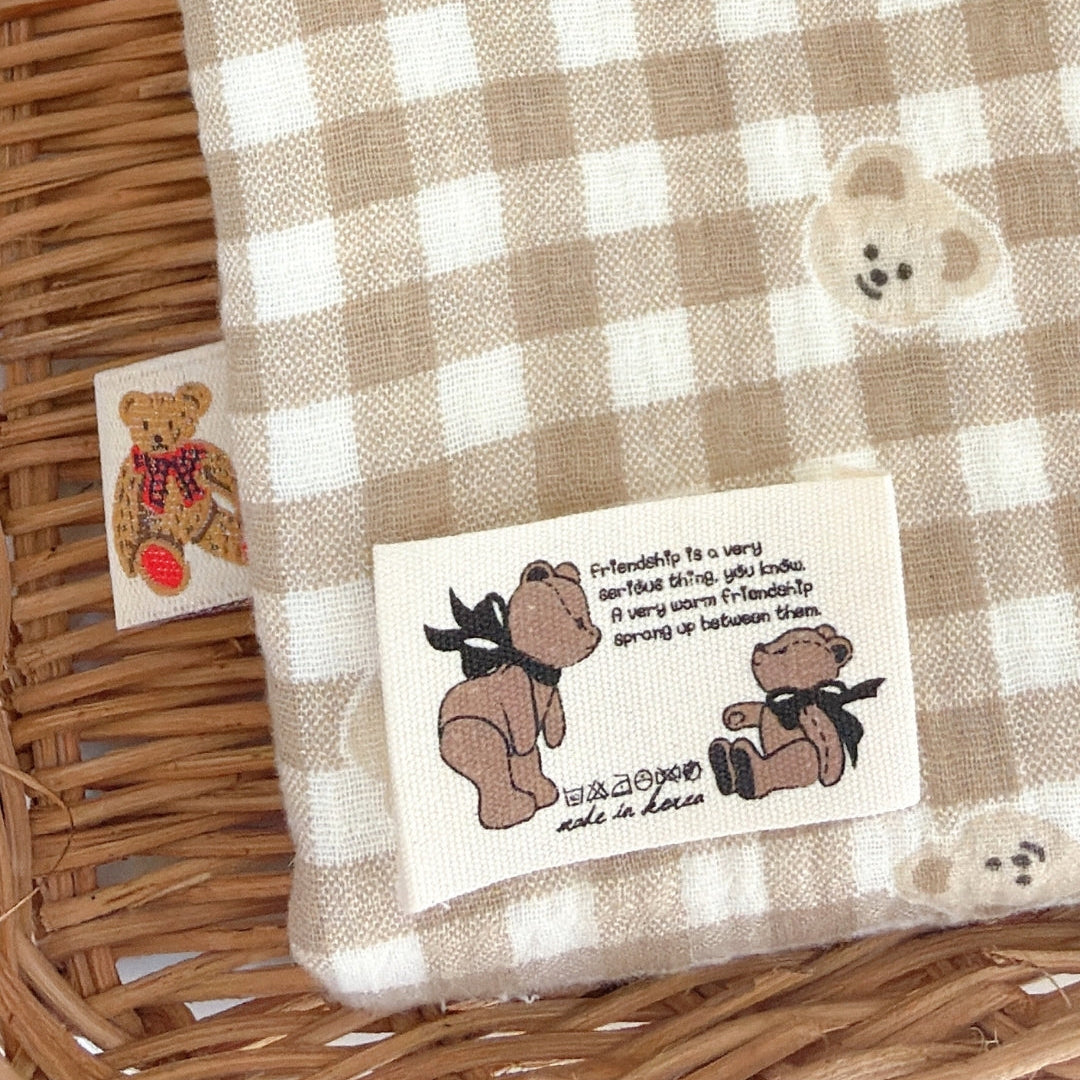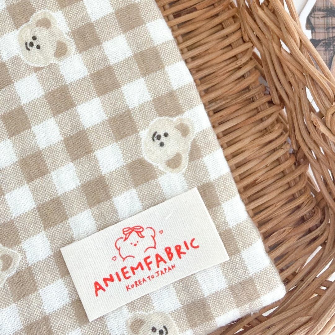 やわらかなミルクティー色のチェック柄に、ぽんっと並んだくまさんが可愛いガーゼ生地🧸
