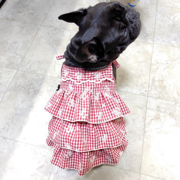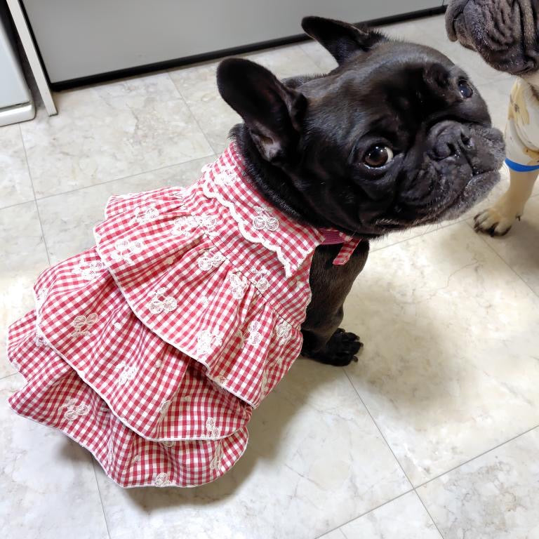 チェリーの刺繍とスカラップが