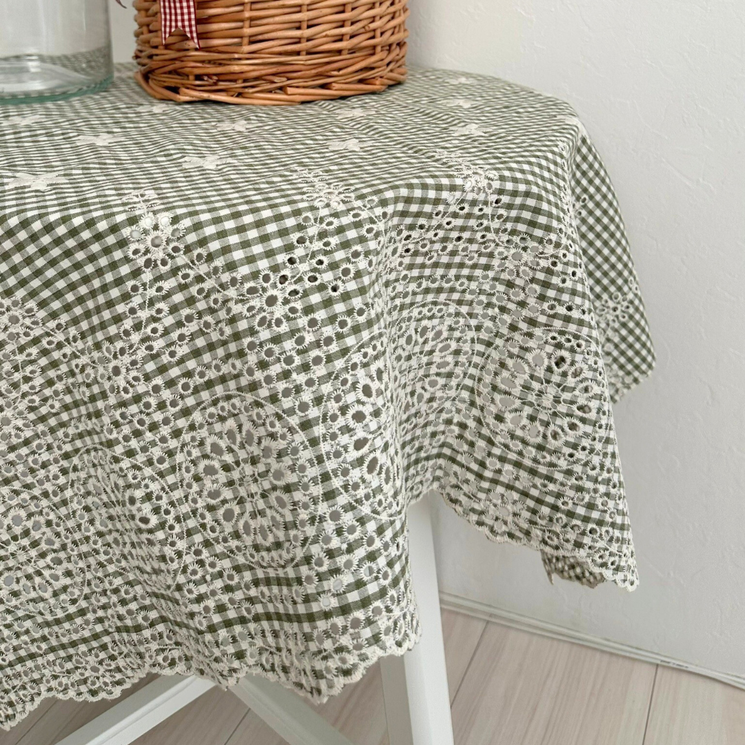 【即納】flower check / 刺繍 / コットン / チェック / フラワー[EM002]