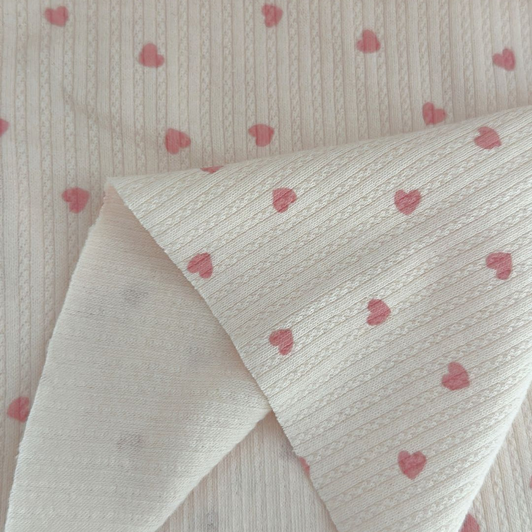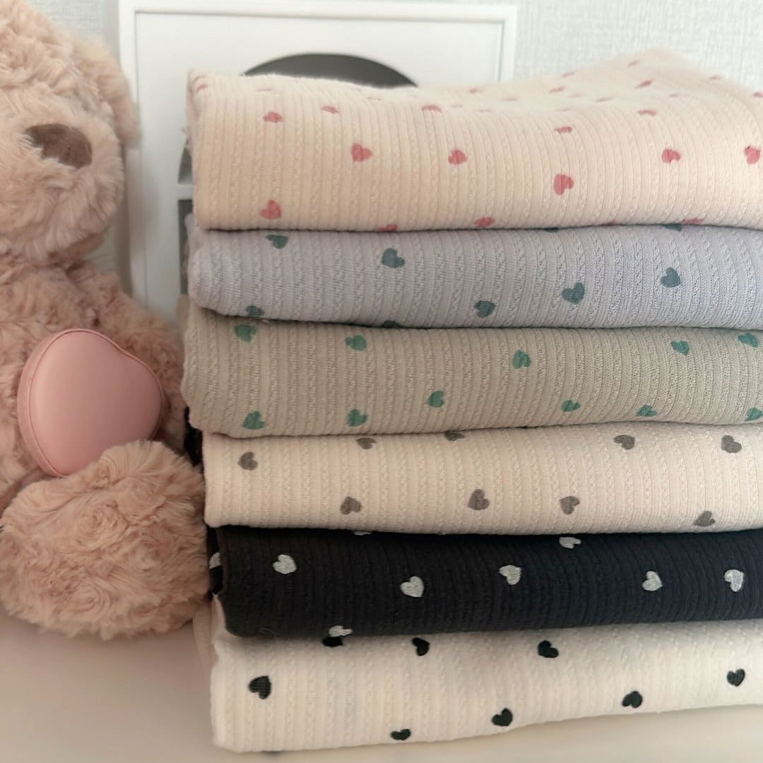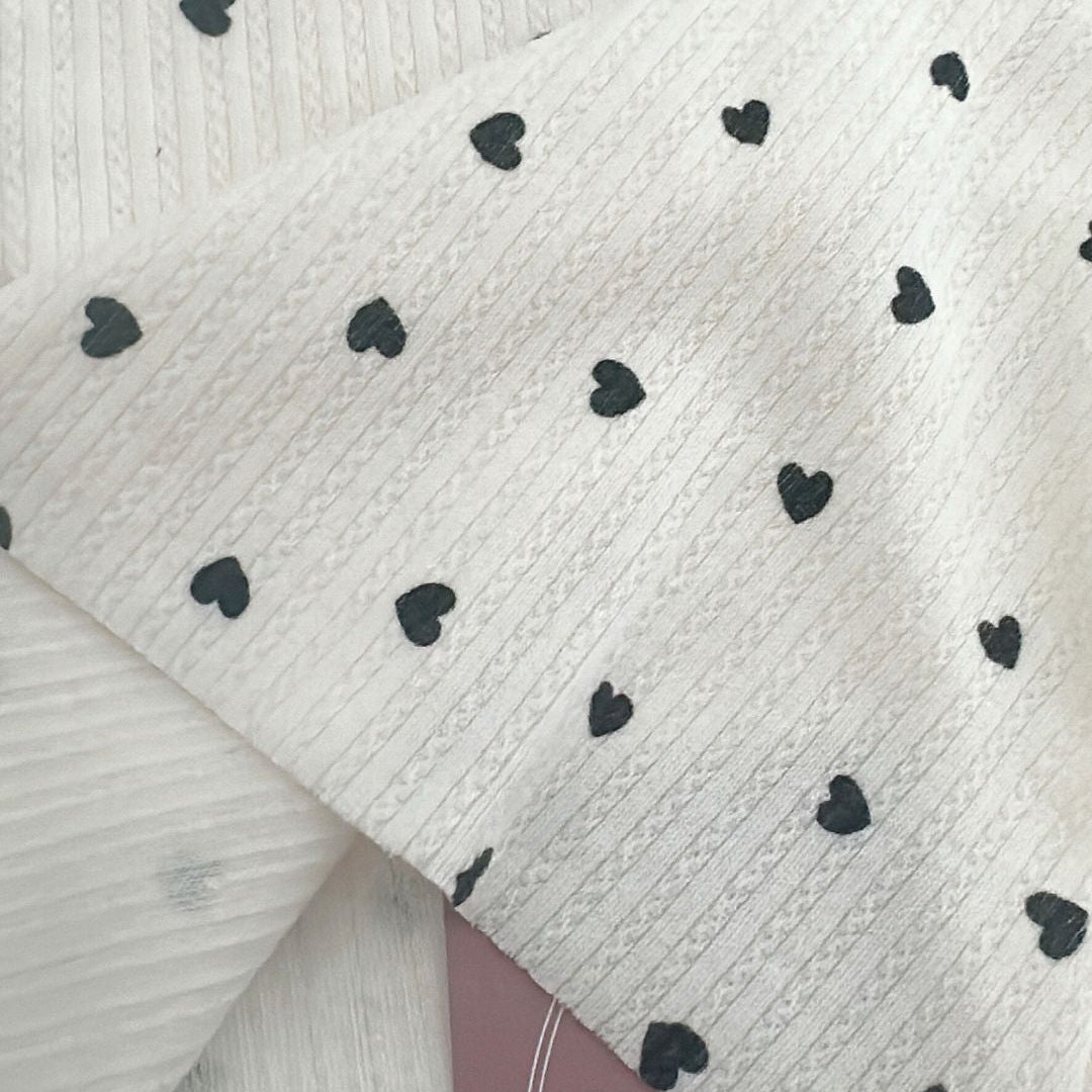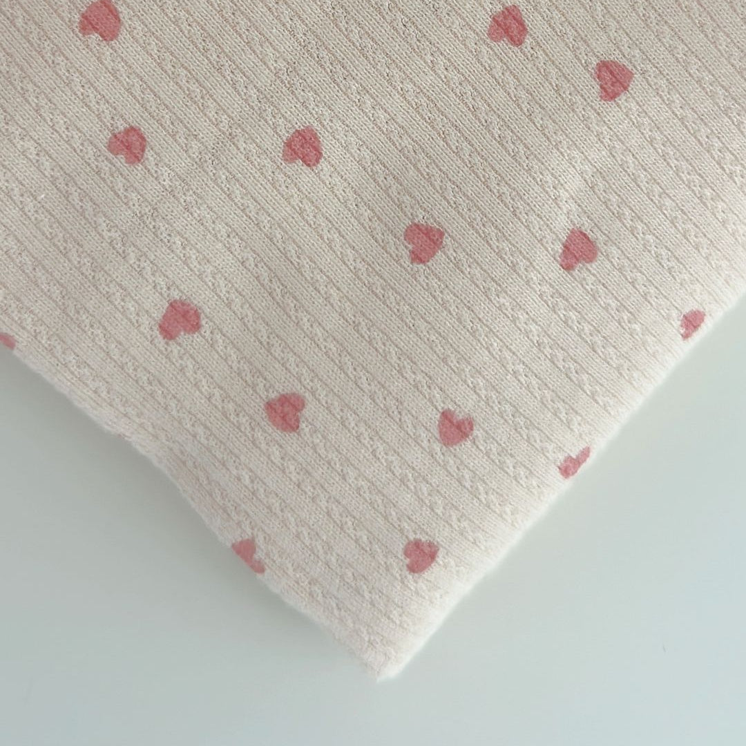 リブ素材に小さなハート模様が散りばめられた、愛らしい生地💘