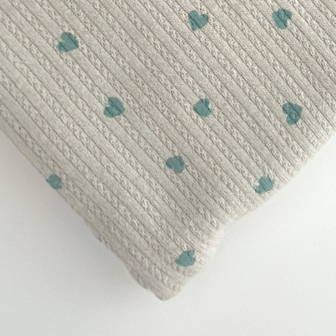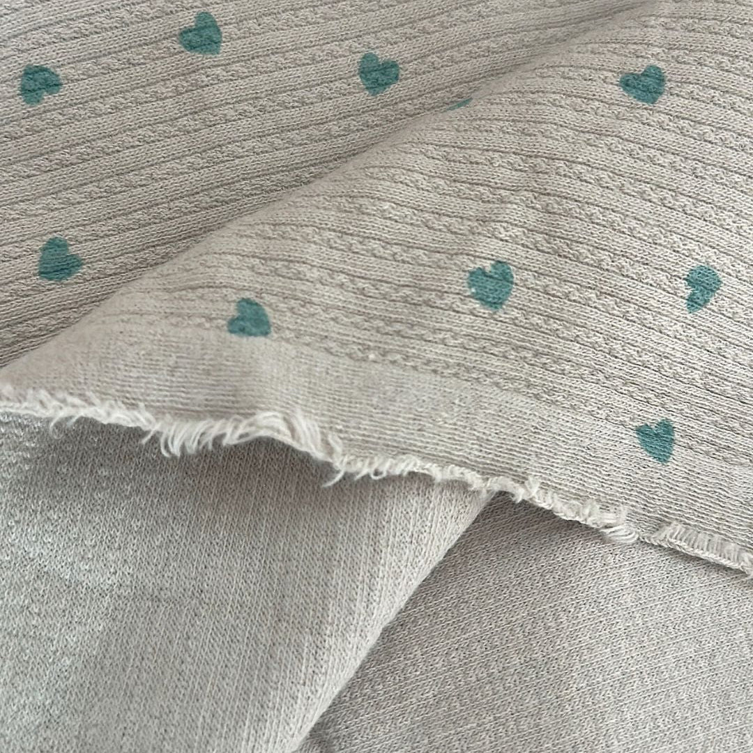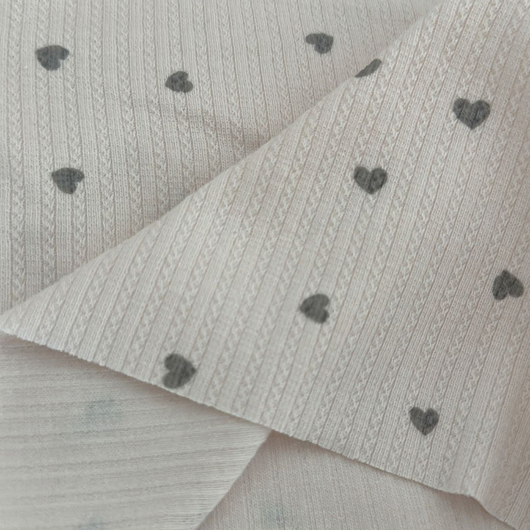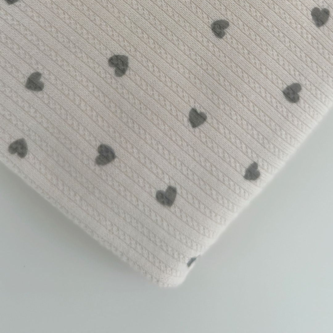 リブ素材に小さなハート模様が散りばめられた、愛らしい生地💘