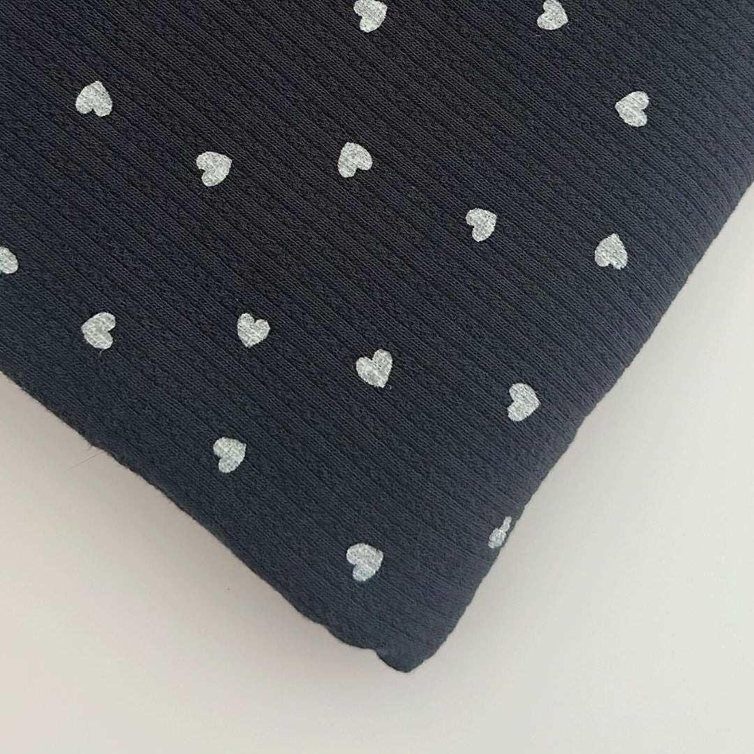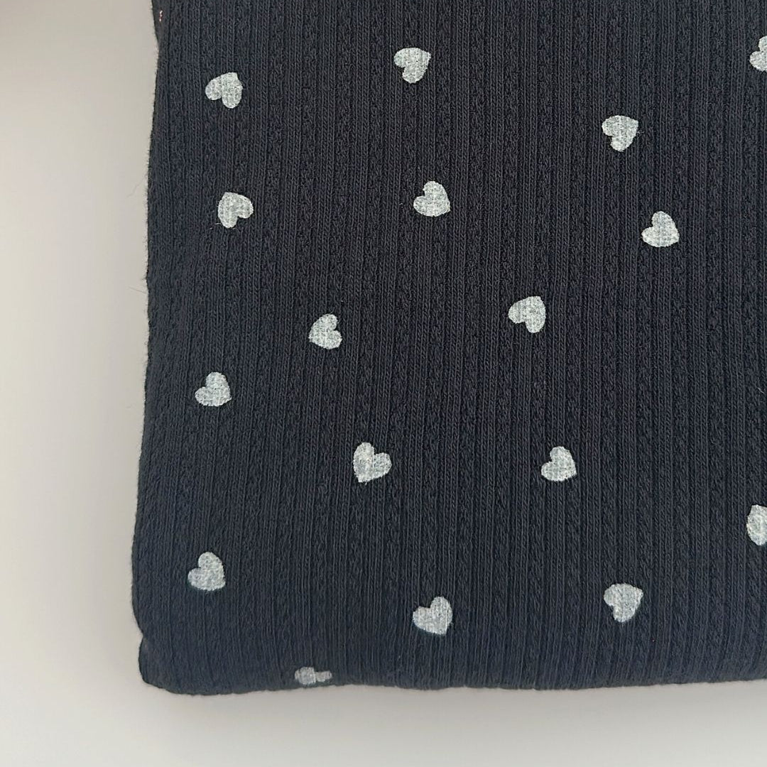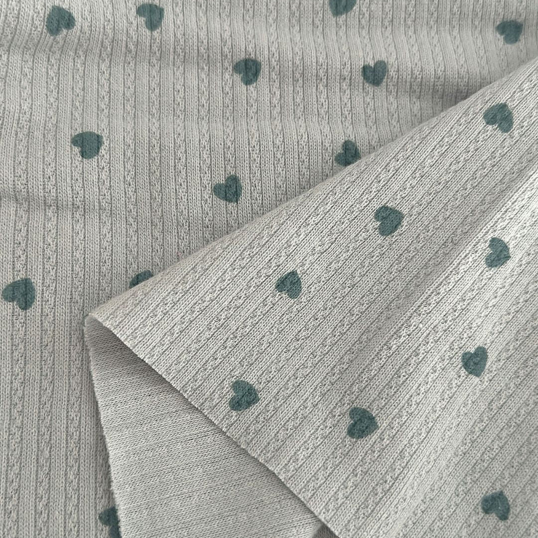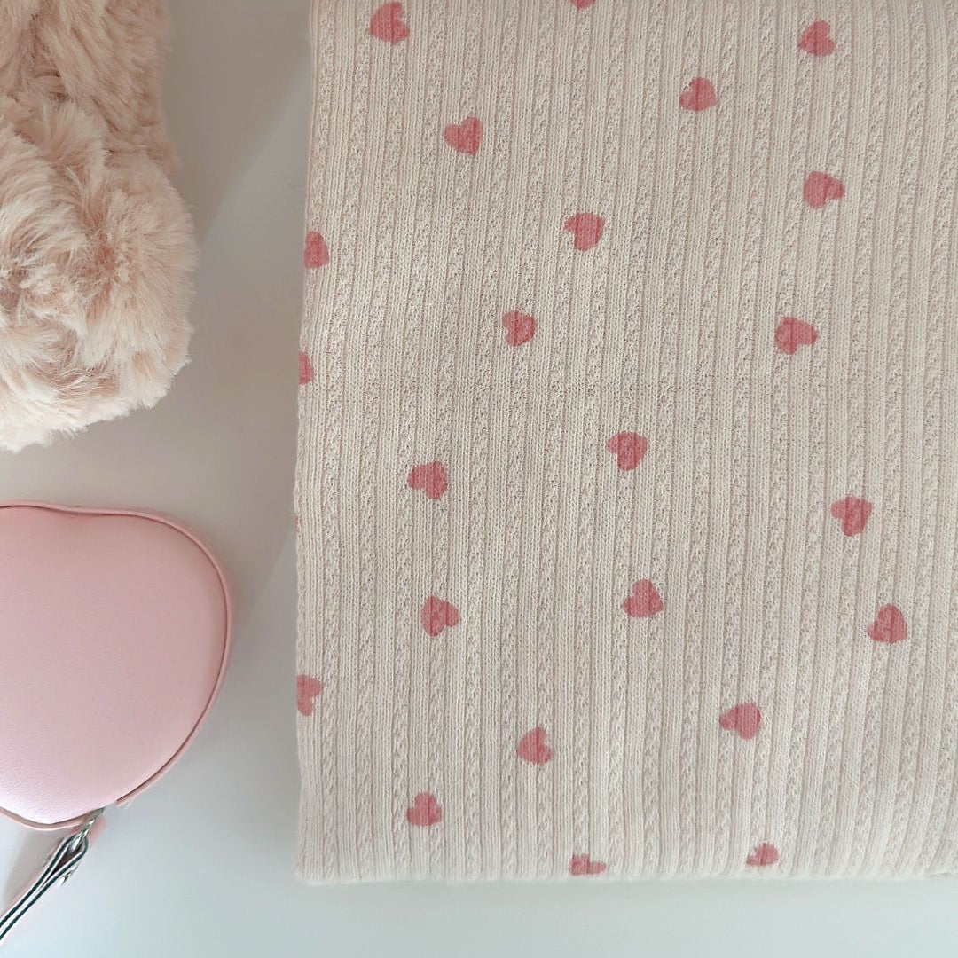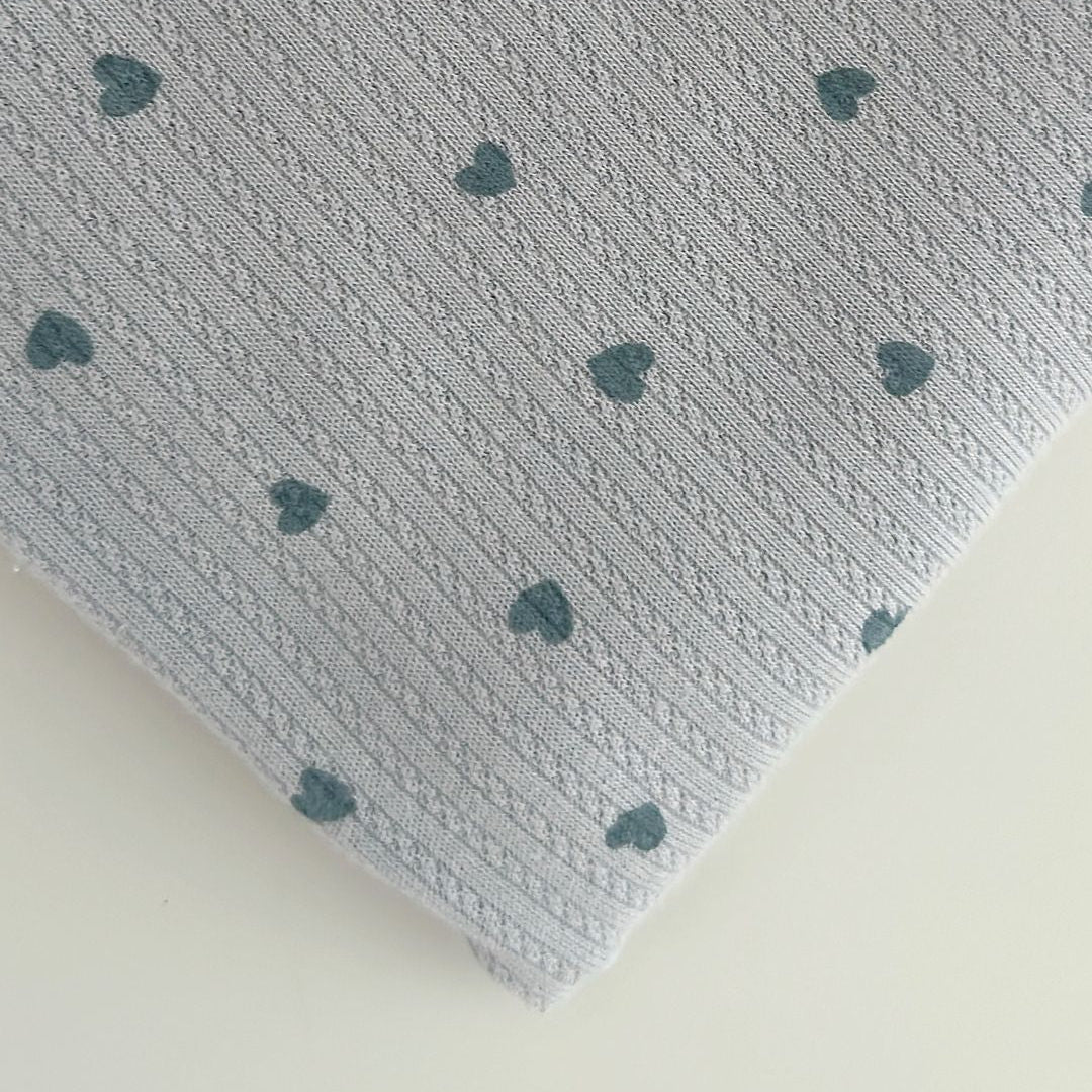 リブ素材に小さなハート模様が散りばめられた、愛らしい生地💘