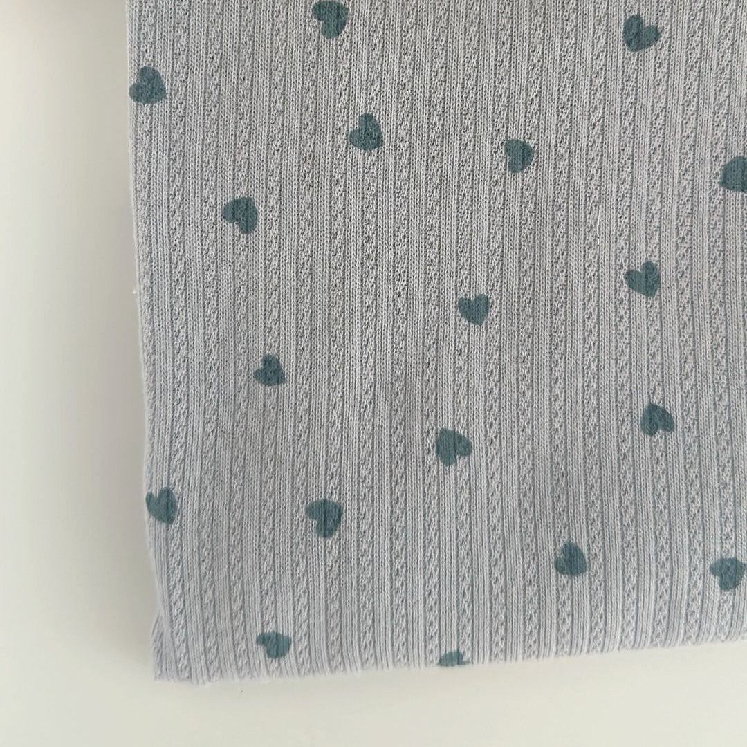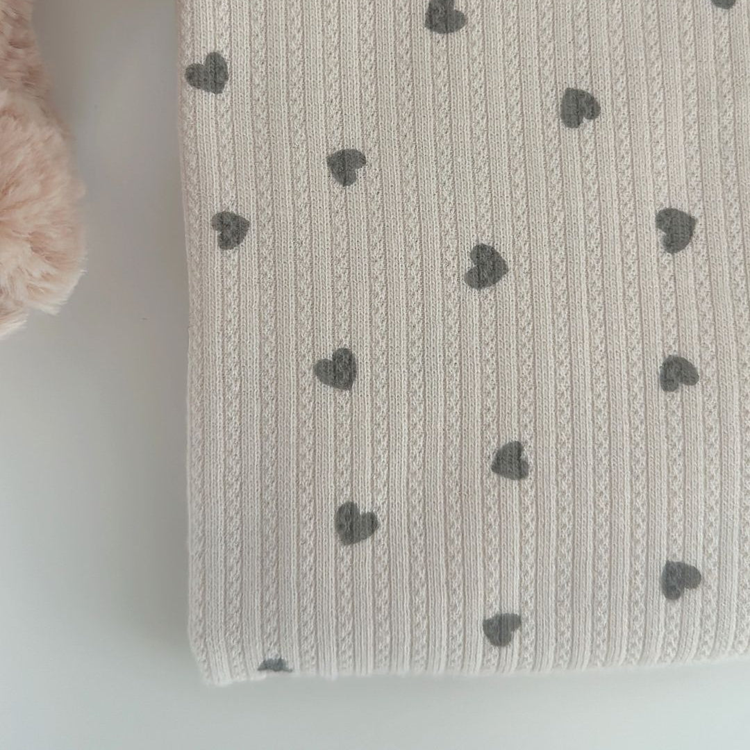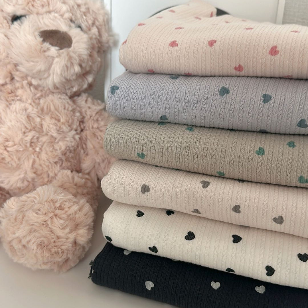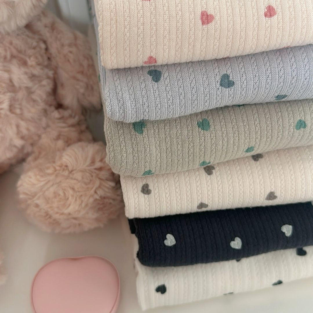 リブ素材に小さなハート模様が散りばめられた、愛らしい生地💘
