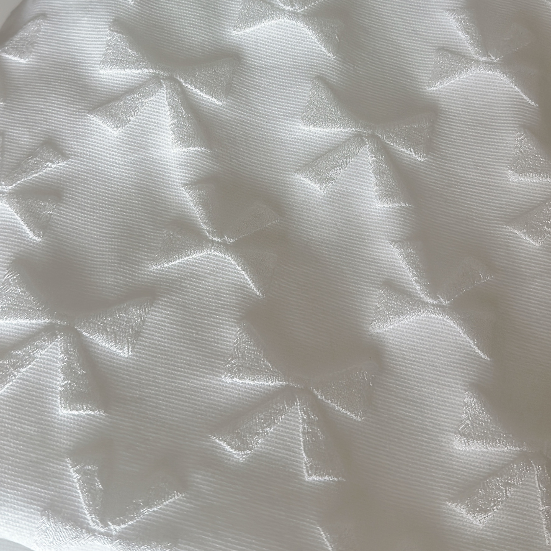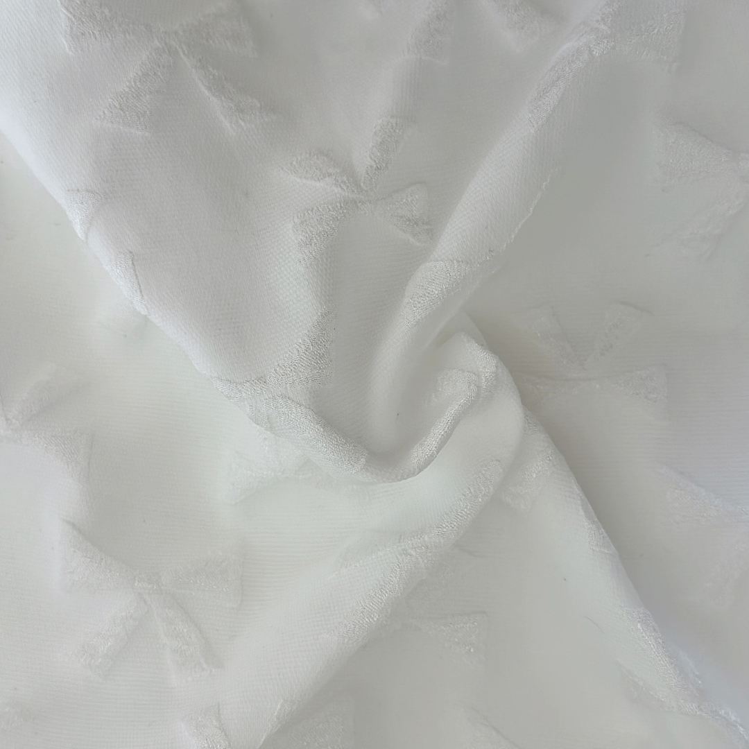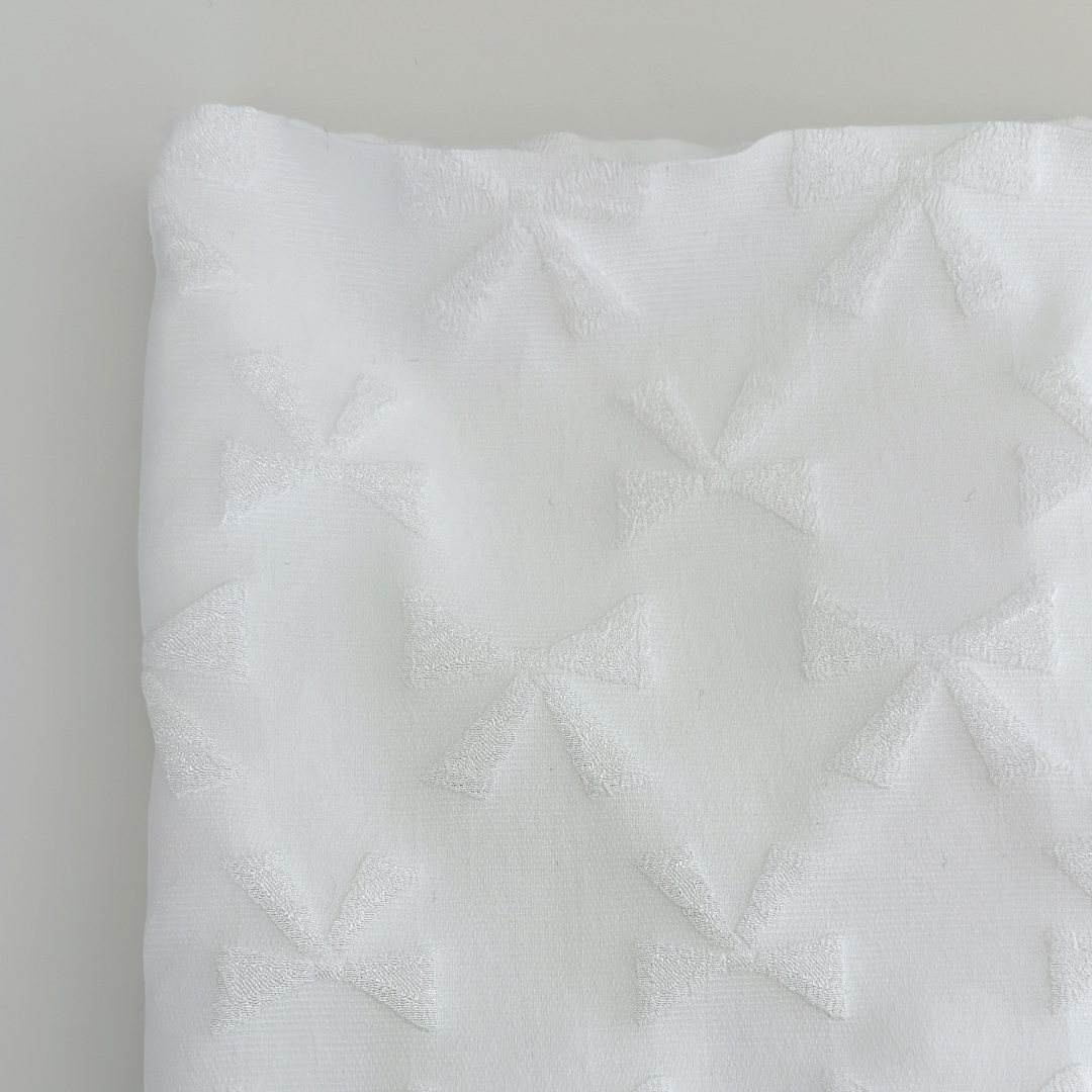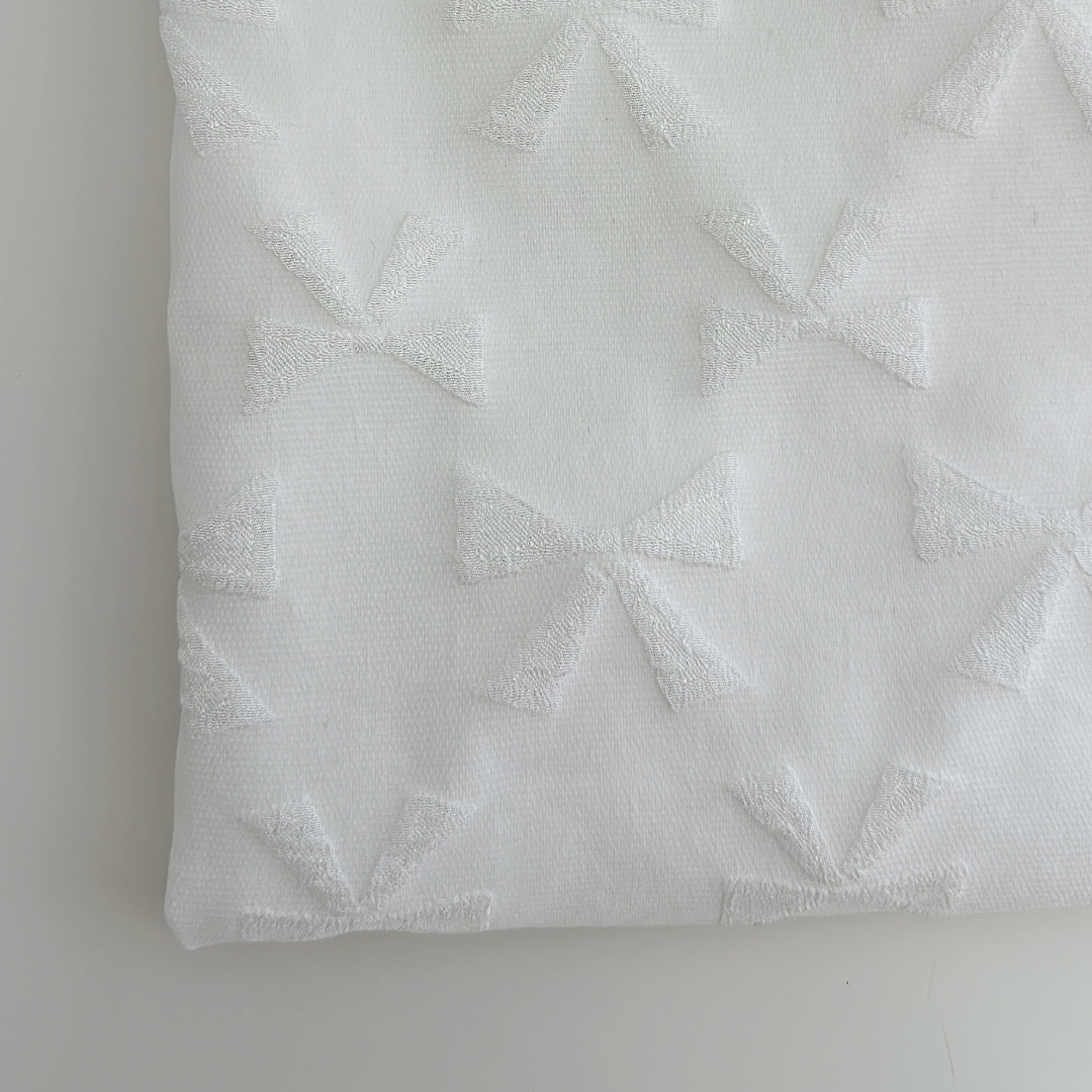 真っ白な地にさりげなく浮かぶリボン柄ジャカードが上品な一枚🎀✨
