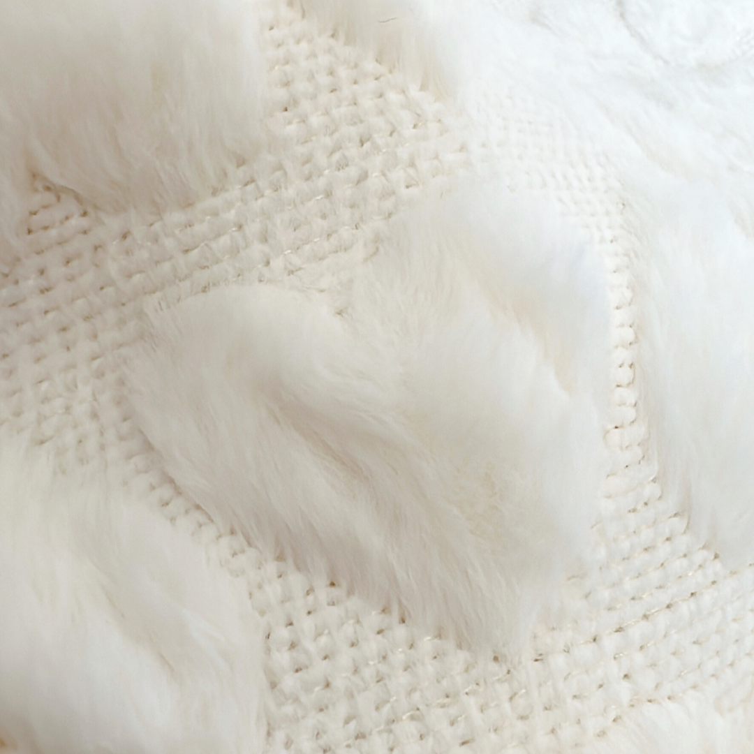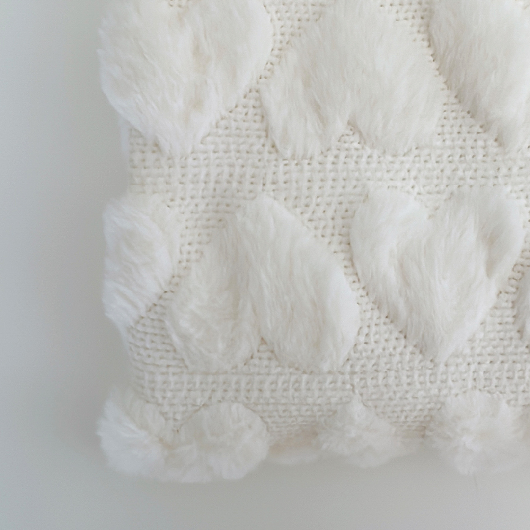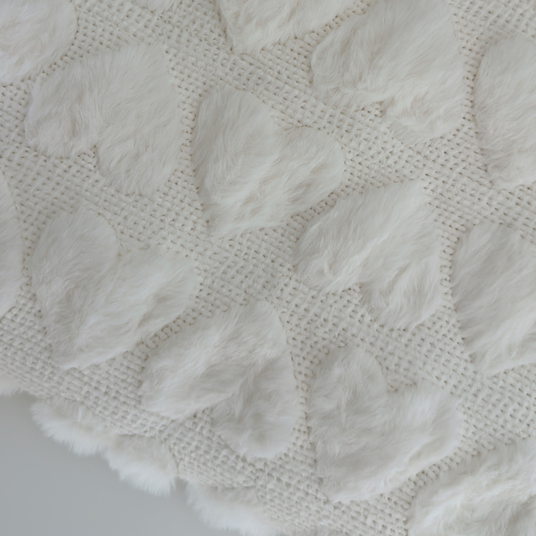 ベースはナチュラルな編地で、その上に小さなファー素材のハート模様が、まるで雲の上に浮かんでいるような優しい雰囲気…✨⛄