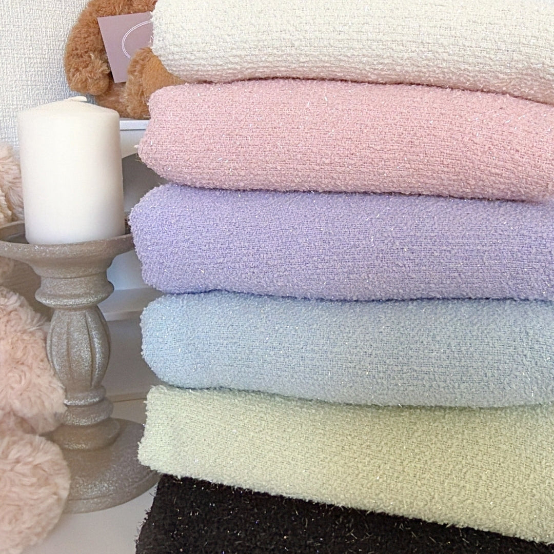 ふんわりとした起毛感と、細かな繊維とラメがきらっと表情をつくる存在感のあるテクスチャー生地です✨🪡