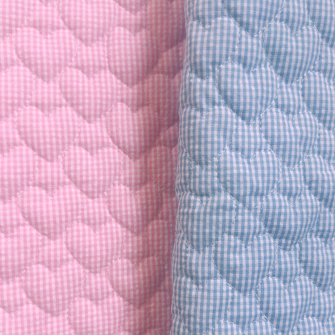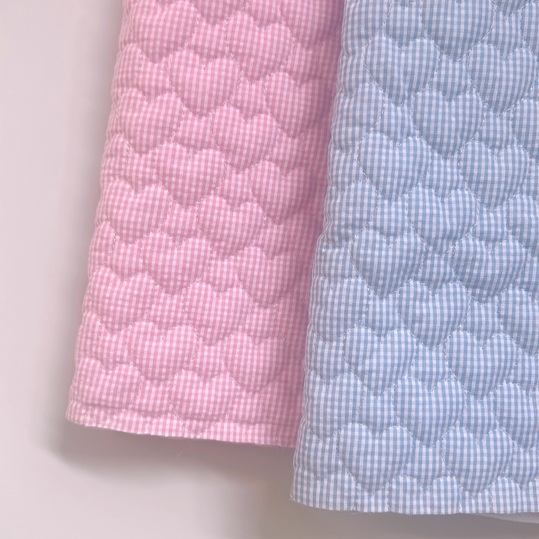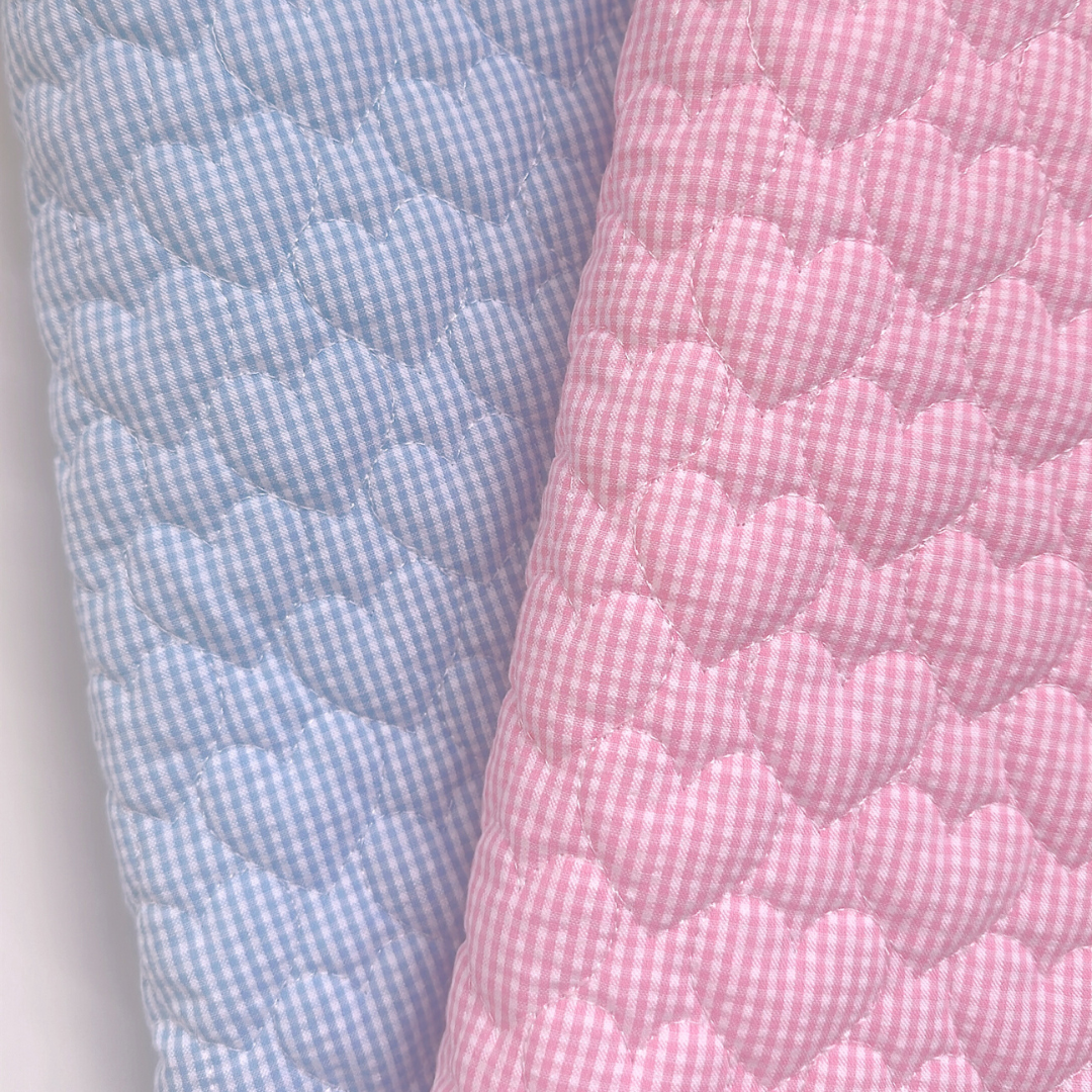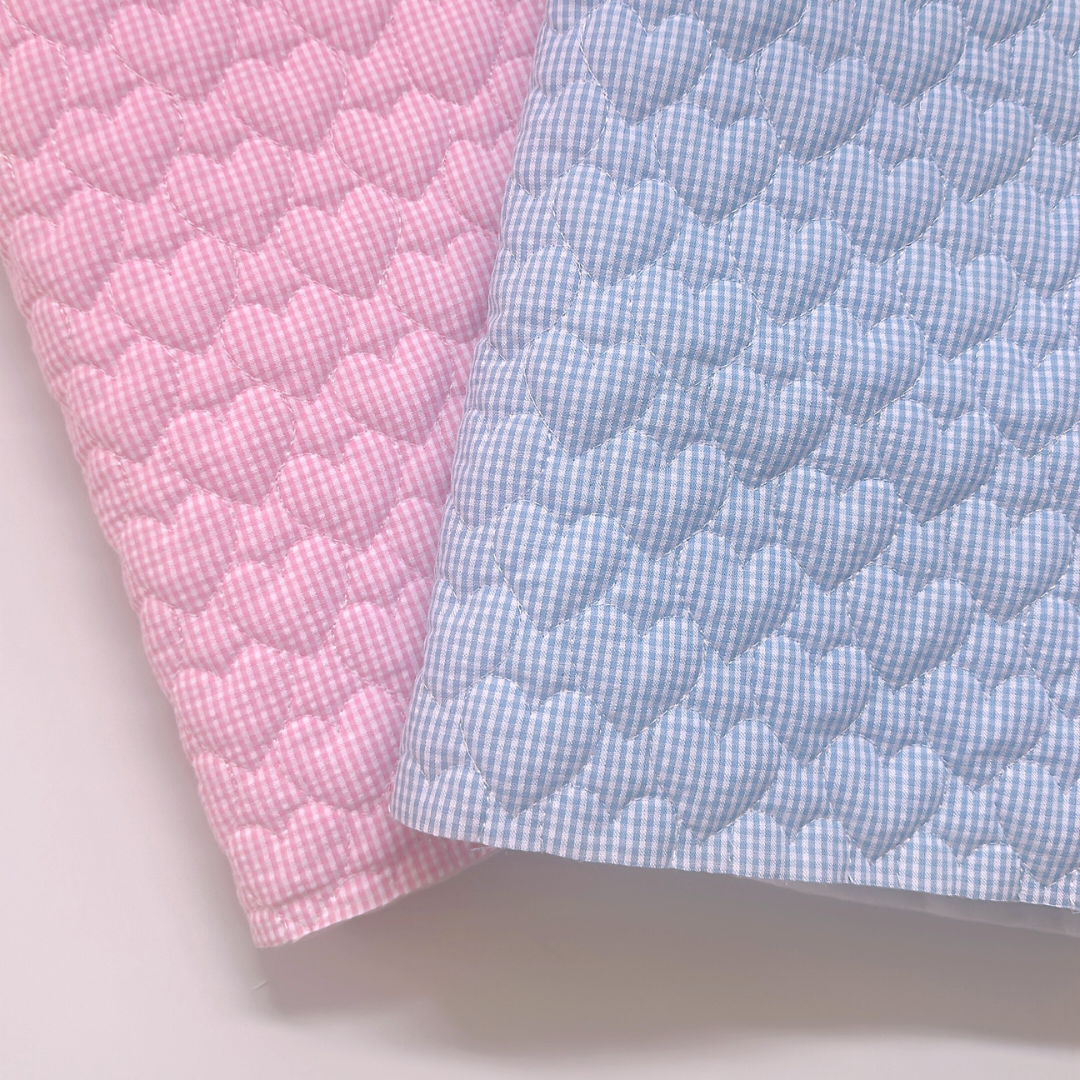 【即納】gingham seersucker heart quilting / ギンガム / ハート / キルティング[QU019]