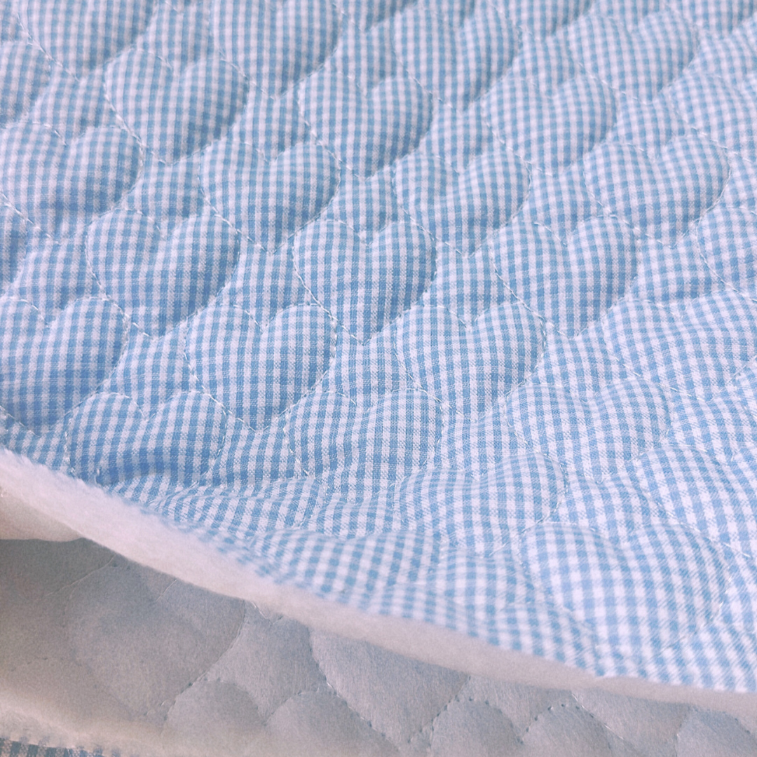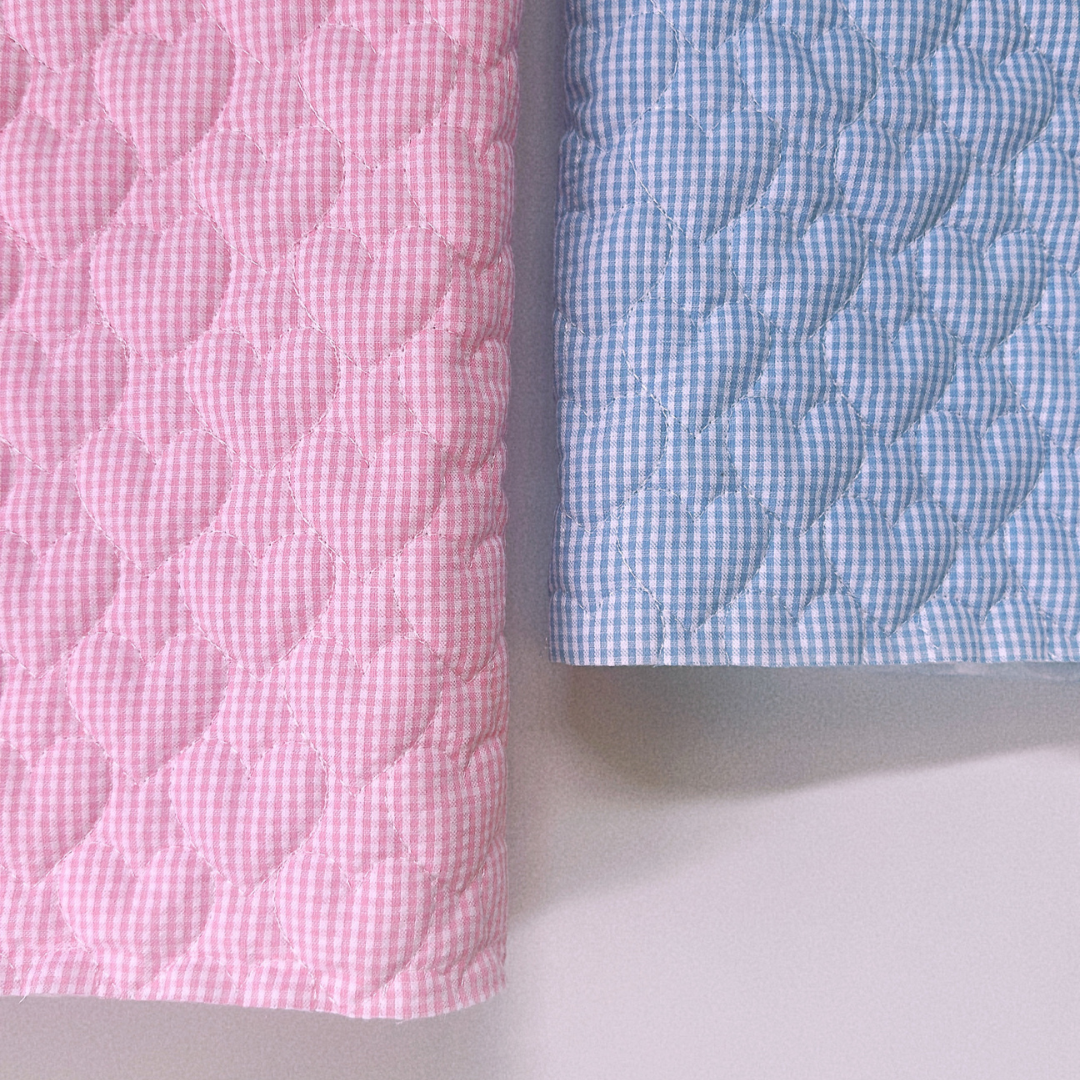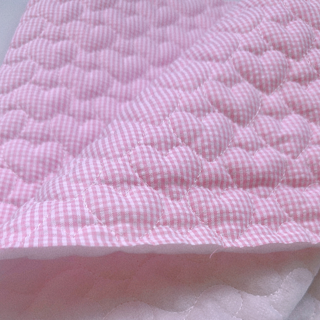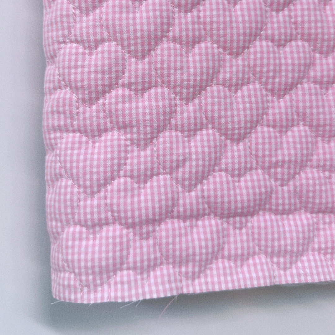 ギンガム×ハート型のキルティングの組み合わせで